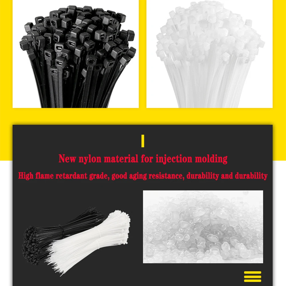 Самоблокирующиеся пластиковые нейлоновые кабельные стяжки, черные и белые, стандартная ширина 100, Крепежное кольцо 4x3,6 4x200 4x300, кабельные стяжки, 400 шт.