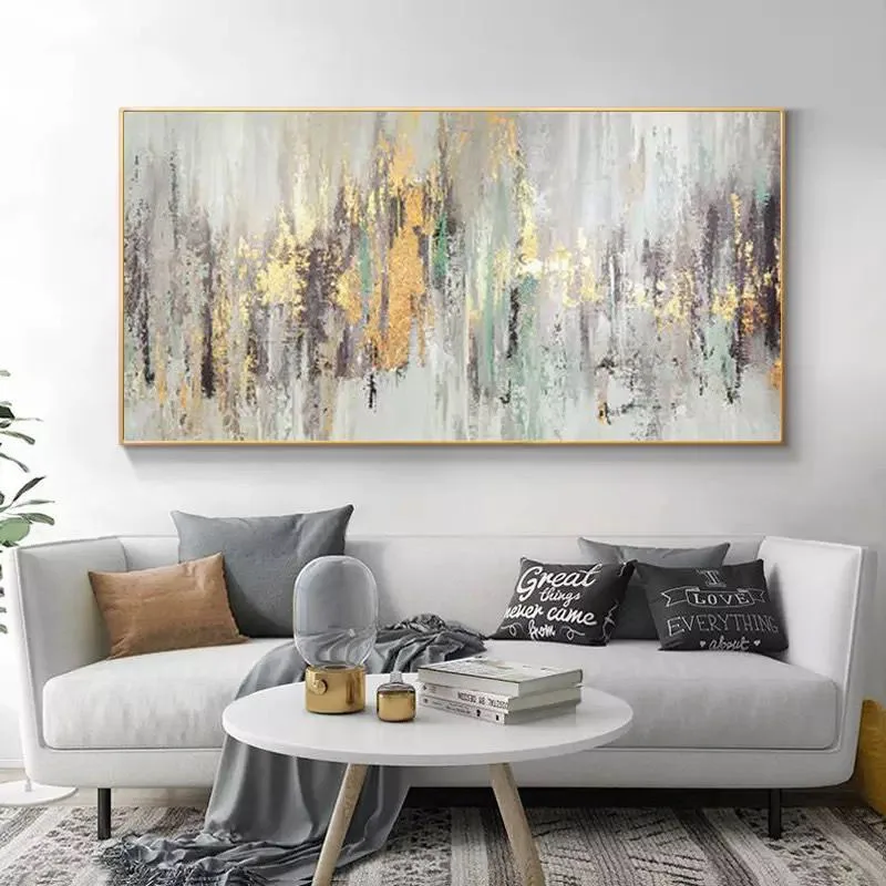 100% ручная роспись Серый Золотой синий абстрактный Сказочный метод затенения масляная живопись холст ручная роспись домашний декор искусство