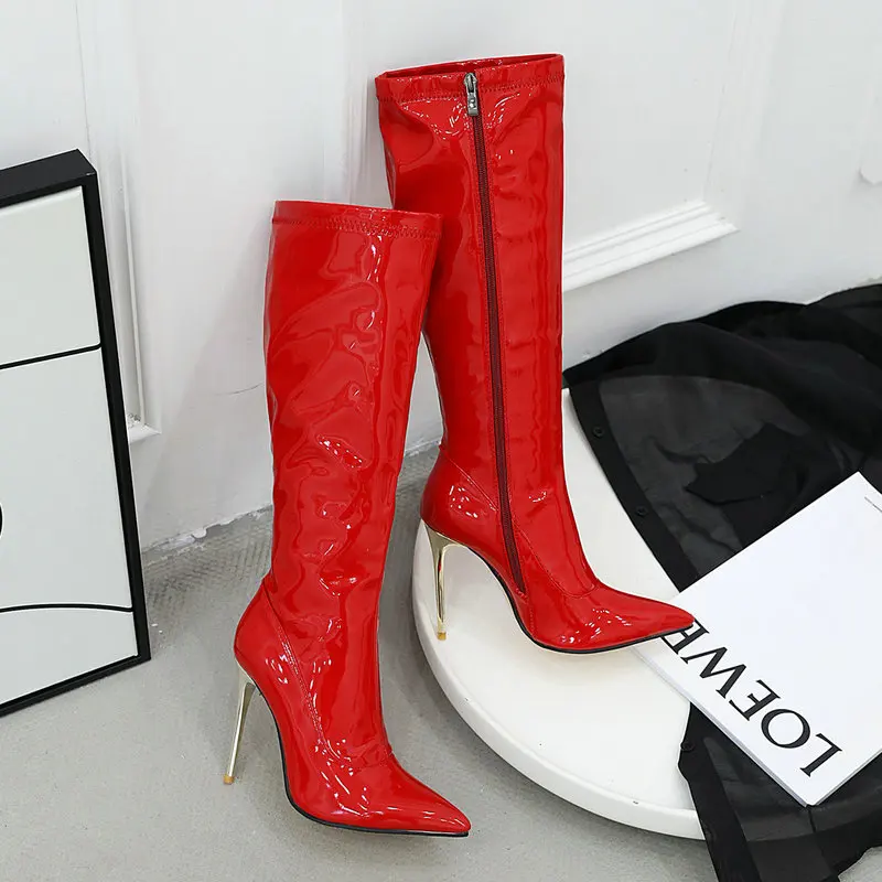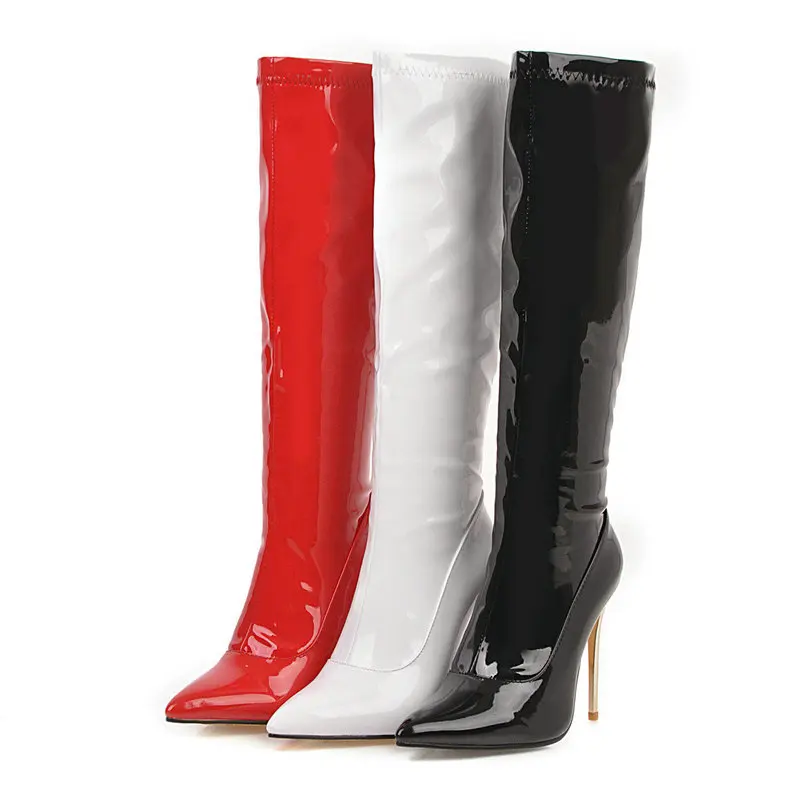 Черные, красные, белые Лакированные кожаные привлекательные сапоги ...