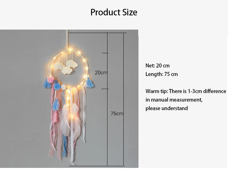 Ловец снов в облаке, перо, Ловцы снов, светодиодный светильник ручной работы, настенная подвеска, украшение для детской комнаты