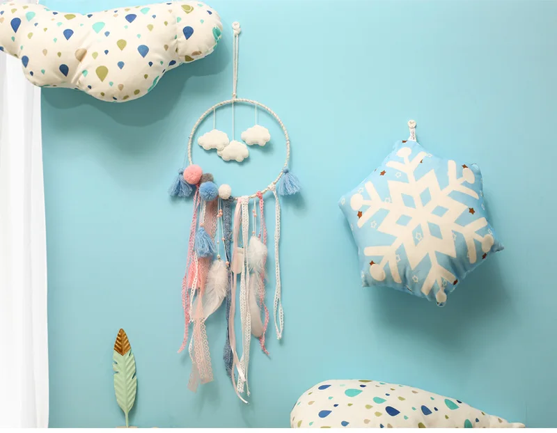 Облако Ловец снов перо Ловца снов ручной работы светодиодный светильник настенный подвесной кулон Ловец снов с кисточками украшение для дома детской комнаты
