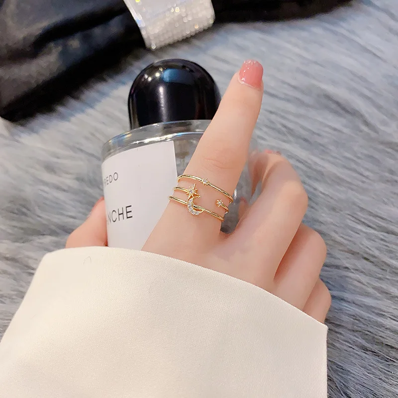 Кольцо женское регулируемое из нержавеющей стали, с цирконом, 2021