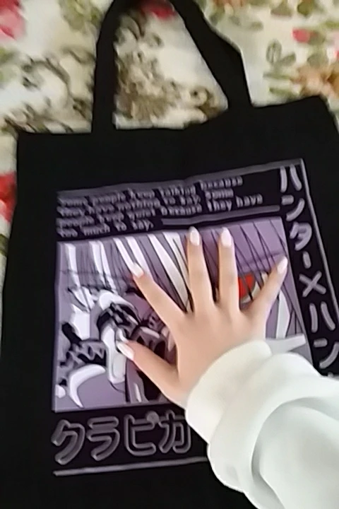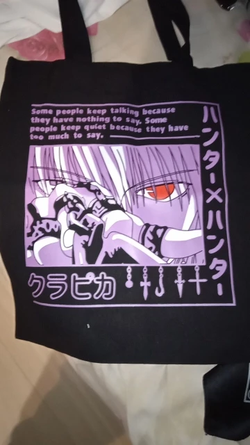 шоппер очень крутой, курапика краш, но ручки рил коротковаты(( и да, если боитесь за качество печати, то в принципе, ресунок неплохой, цвета не блеклые, но лучше не присматриваться=) стирать его не советовала бы.