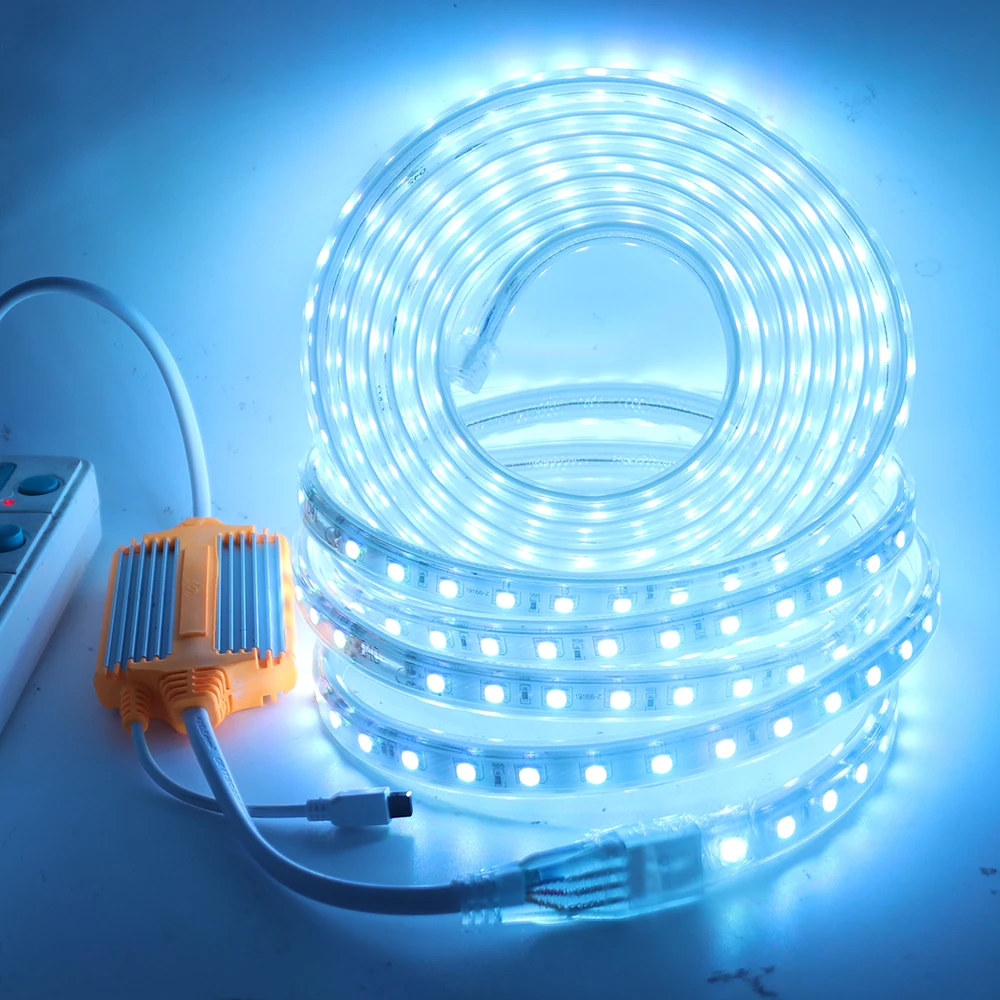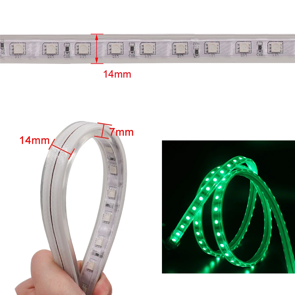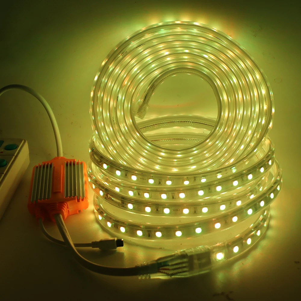 IP67 водонепроницаемая светодиодная лента 5050 RGB пульт дистанционного управления 24 ключа комплект 220V 230V 240V AC 60 светодиодов/м гибкая светодиодная лента украшение дома