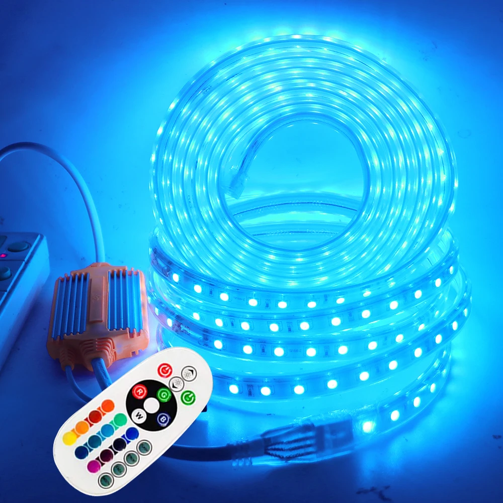 220В светодиодный RGB полоса 5050 Гибкий Светильник 24key дистанционное управление набор штепсельных вилок ЕС 60 Светодиодный sm IP67 водонепроницаемый гибкий светодиодный украшение для дома