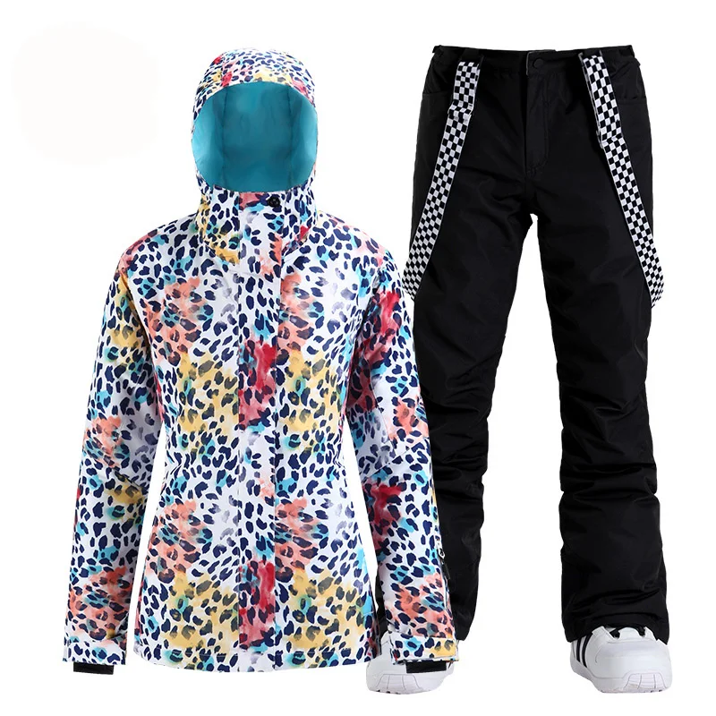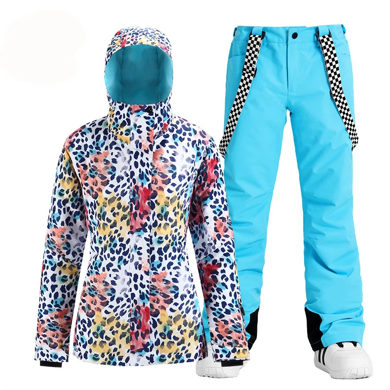 Костюм женский зимний, спортивный, водонепроницаемый, с леопардовым принтом, куртка + штаны
