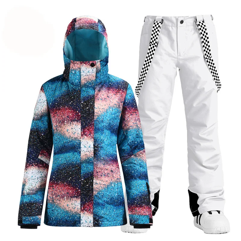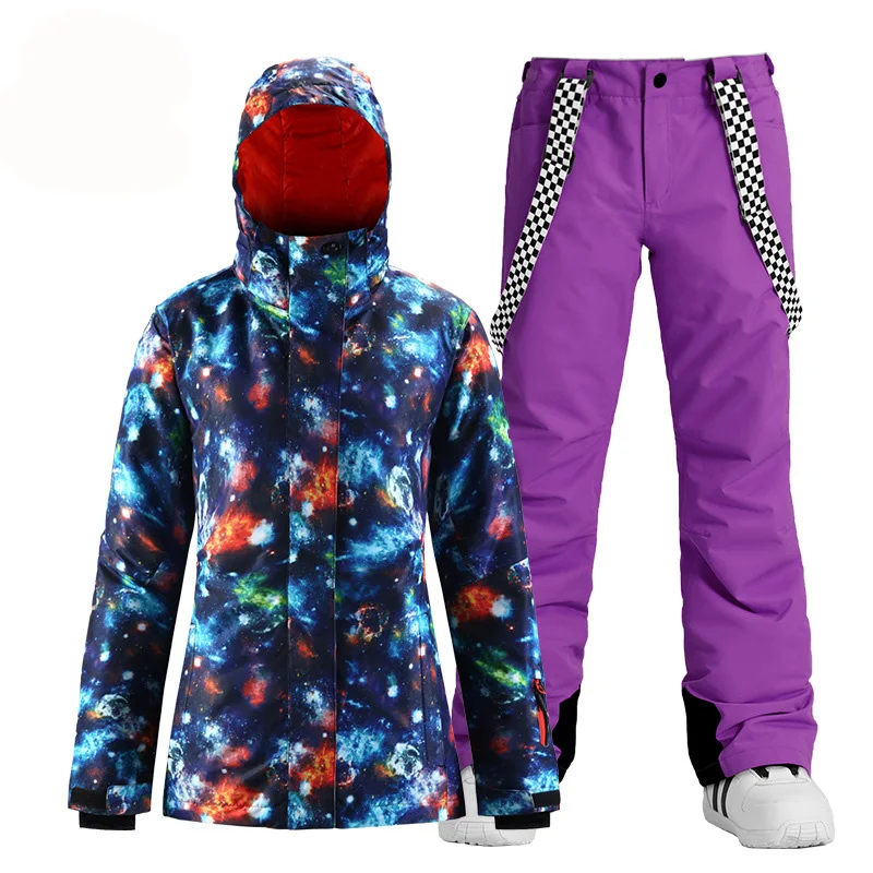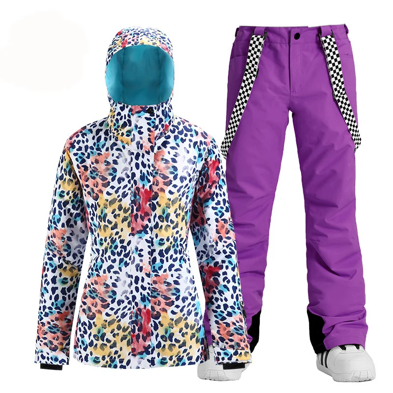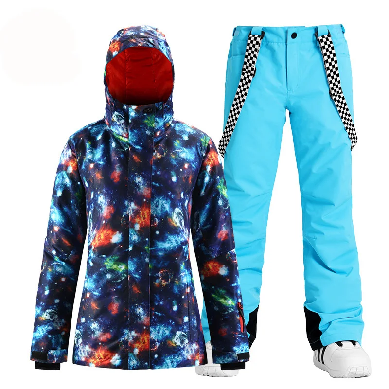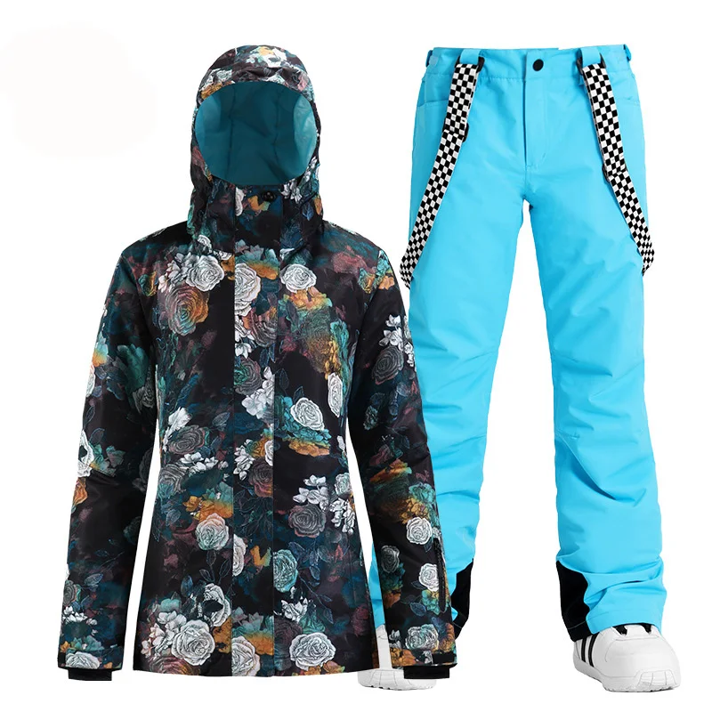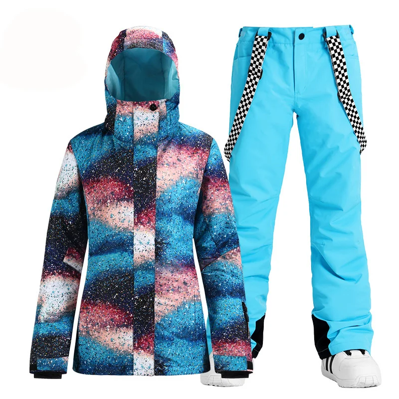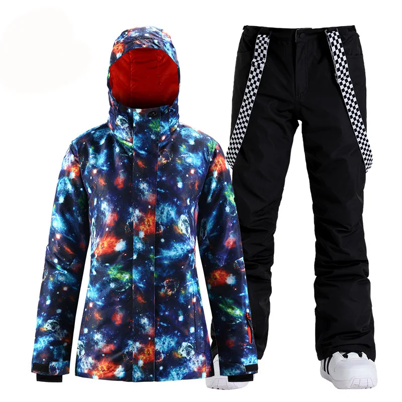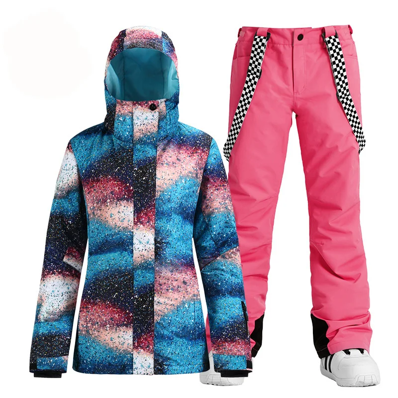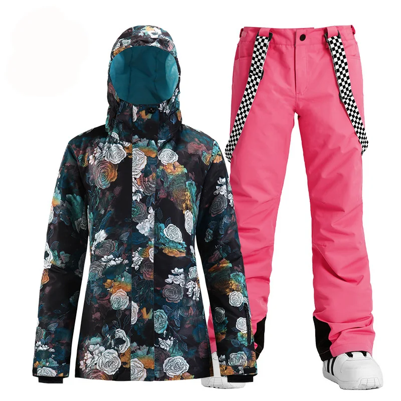 Модный брендовый женский зимний костюм, уличные спортивные лыжные костюмы, водонепроницаемые комплекты одежды для сноуборда, куртка + брюки на бретелях для девочек
