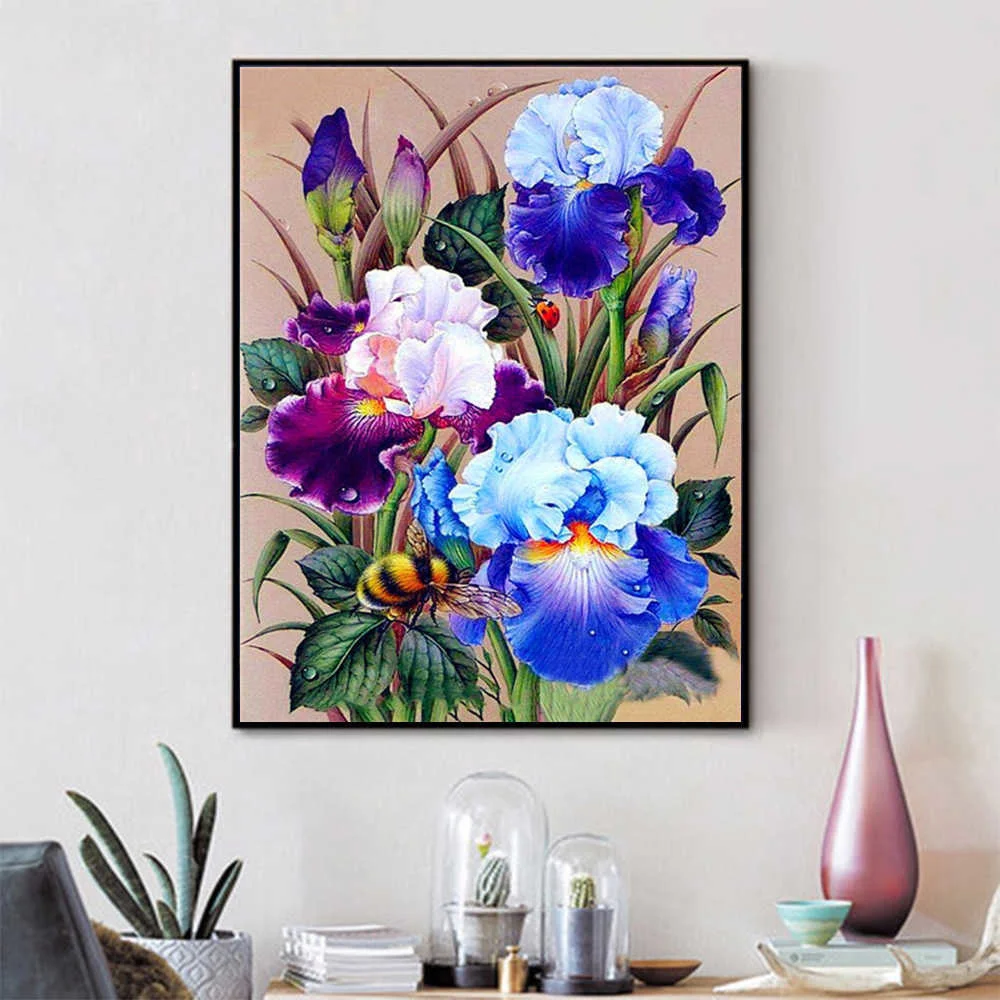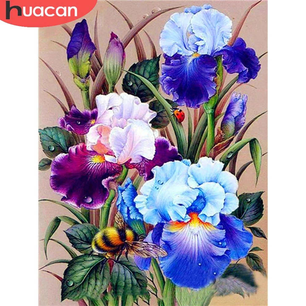 Алмазная живопись HUACAN, цветок, Орхидея, вышивка, мозаика, пчела, вышивка крестом, украшение для гостиной, алмазная живопись