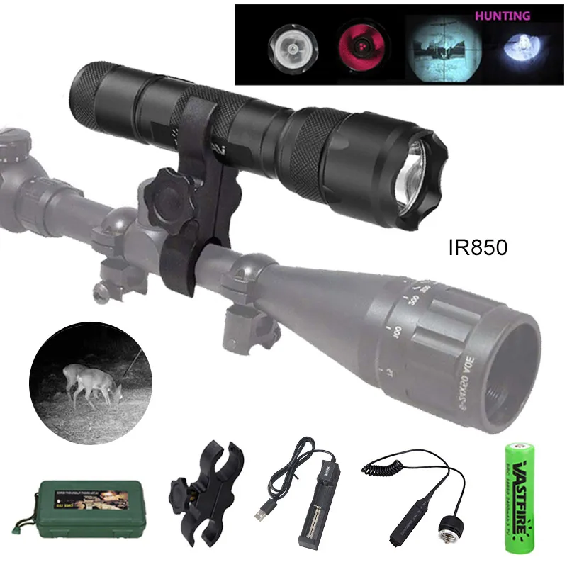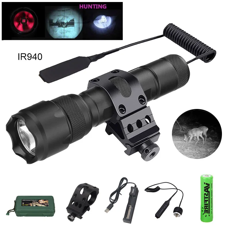 ИК 18650 нмНм тактическая светодиодная вспышка освещение охотничий свиной фонарь ночного видения ИК заполнясветильник фонарь для прицела