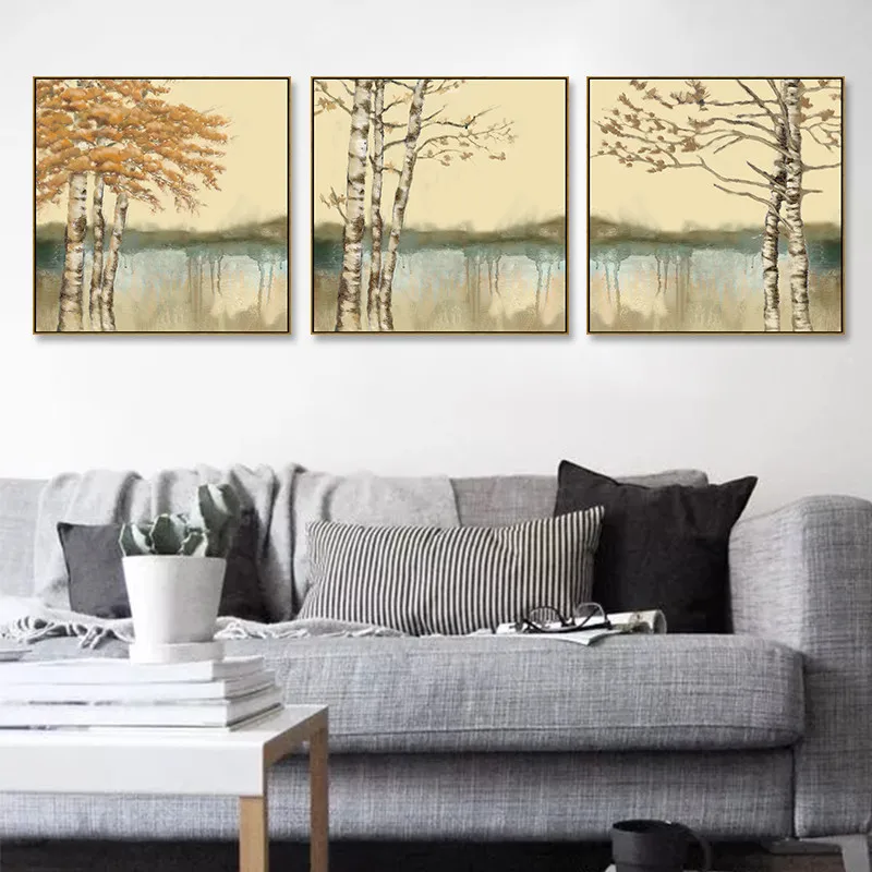Картина в китайском стиле, в стиле ретро, с изображением желтых листьев, озер, Настенная картина для гостиной, отражение дерева