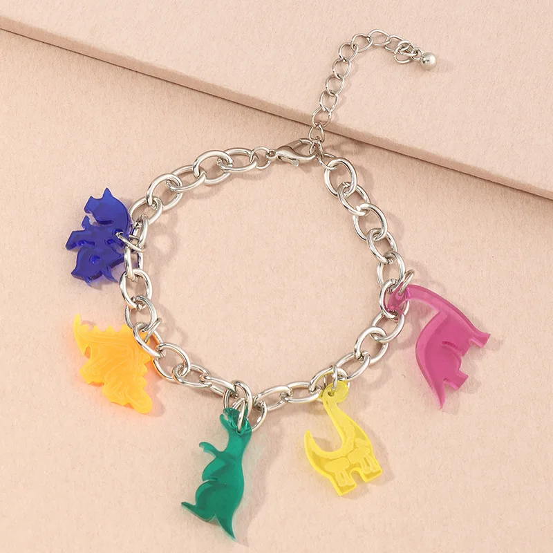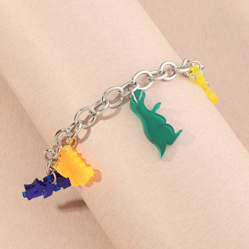 Милые Мультяшные акриловые браслеты с динозаврами, яркие цвета, браслет из смолы с мультяшными животными, подарок на день рождения для девочек и женщин, ювелирные изделия ручной работы