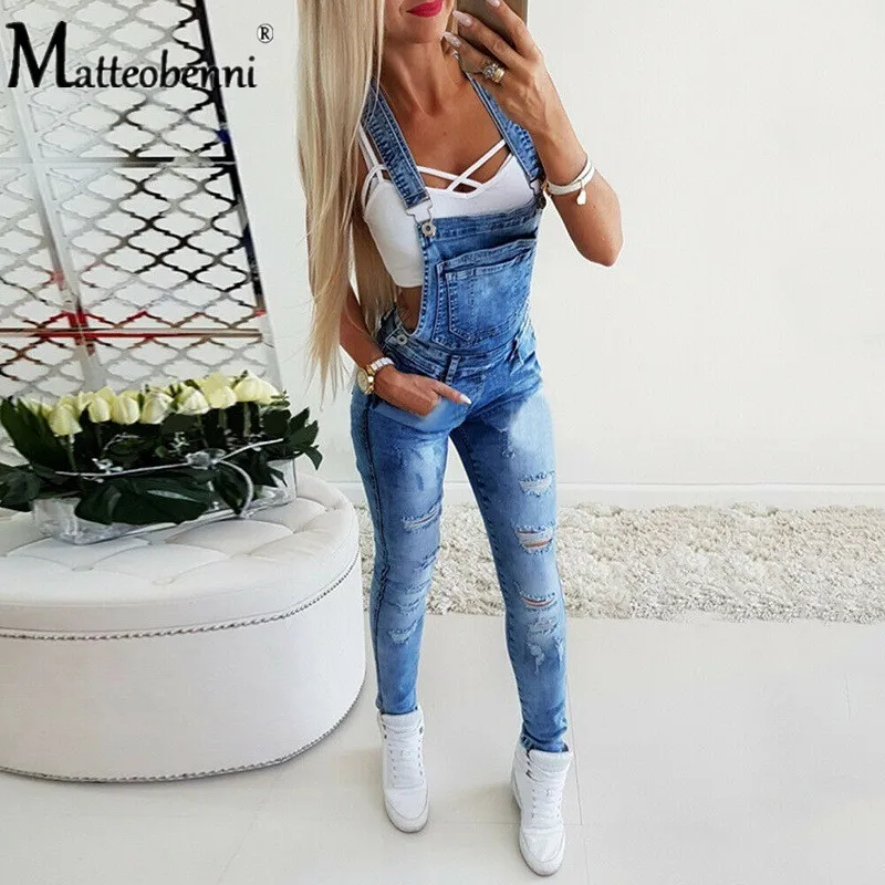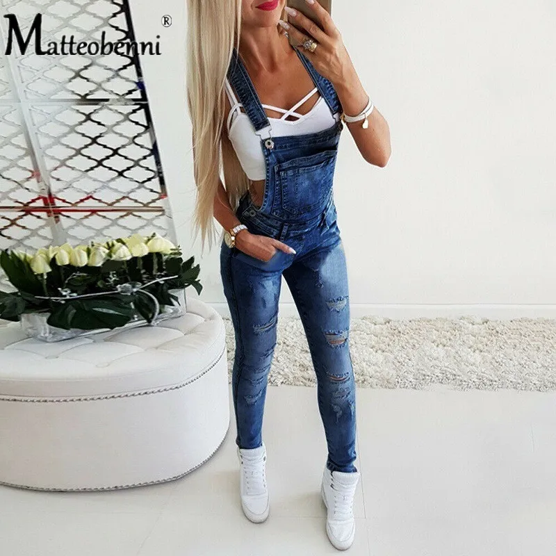 2020 женский модный рваный джинсовый комбинезон с карманами, повседневный слитный Облегающий комбинезон из потертого денима для осени