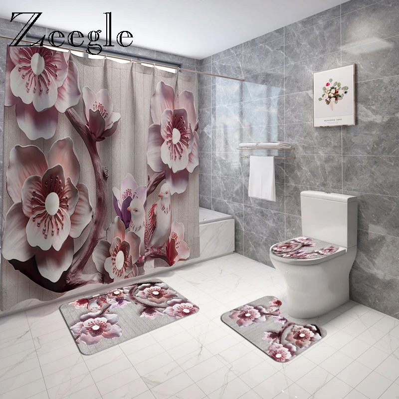 Коврик для ванны и занавеска для душа в традиционном стиле, фланелевый коврик для сиденья унитаза, впитывающий коврик для ног