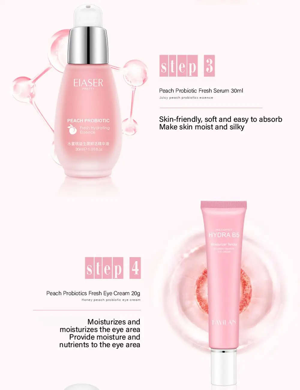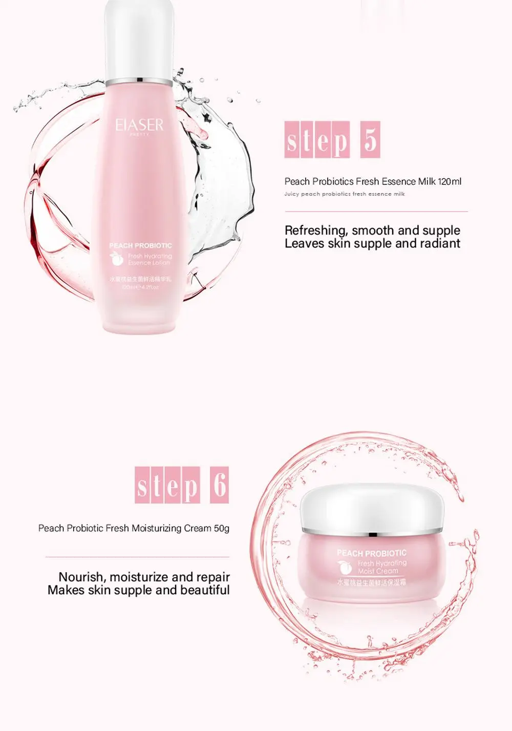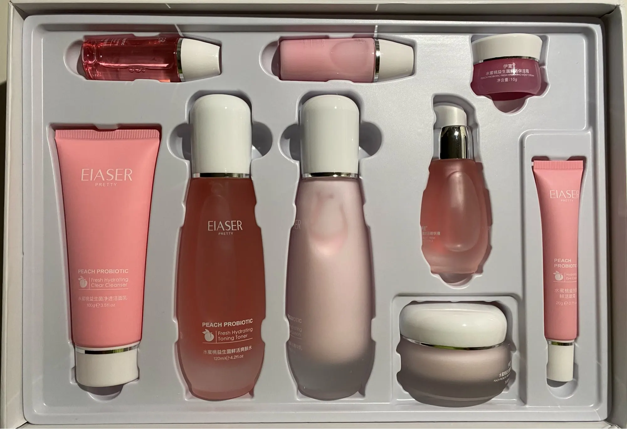 Персиковый пробиотик LAIKOU, 9 шт., набор средств для ухода за кожей лица, восстанавливающий, омолаживающий, против морщин, увлажняющий, отбеливающий, тонизирующий крем для лица