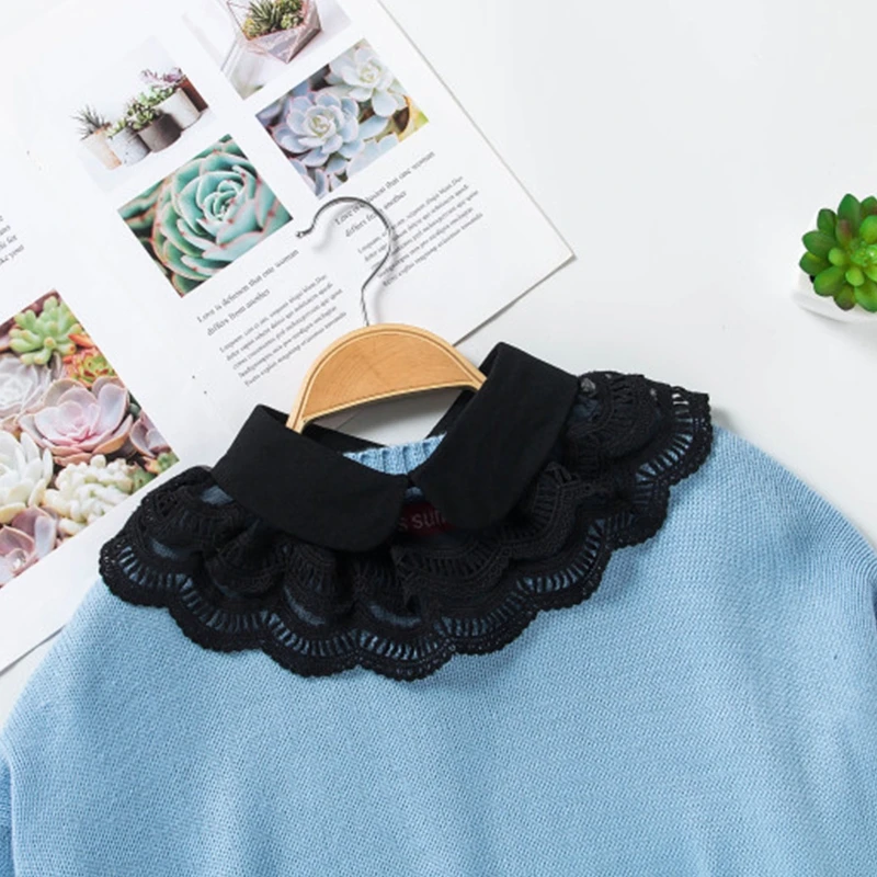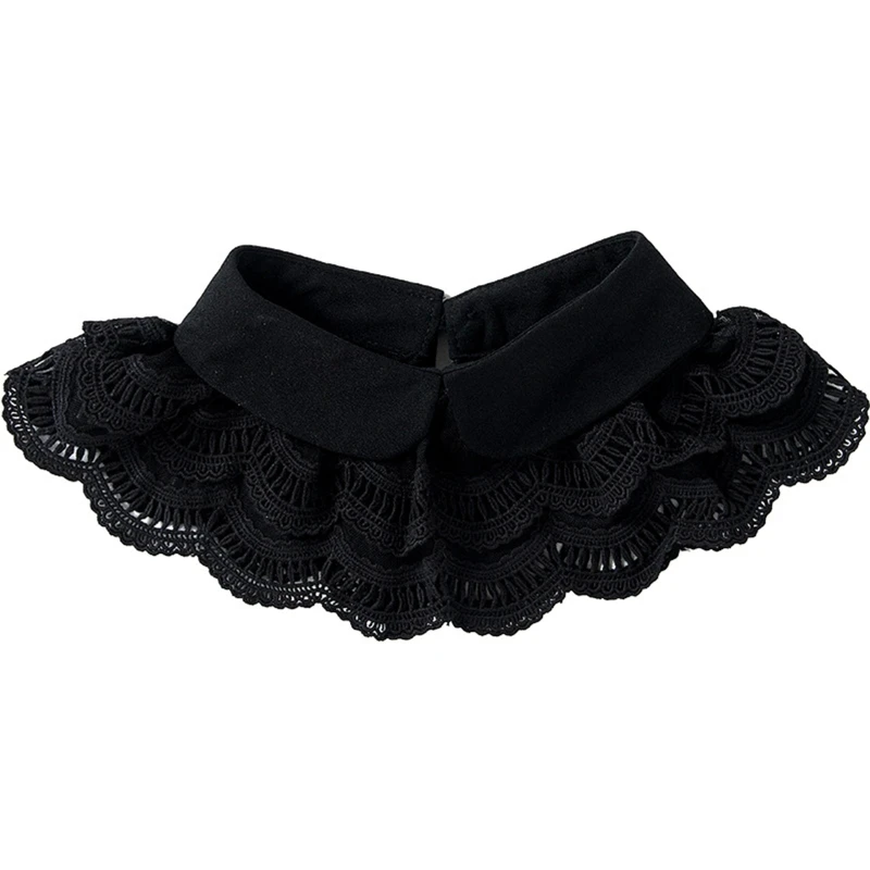 Женское Двухслойное кружевное шифоновое ожерелье с лацканами и зубчатым воротником, однотонное съемное ожерелье, чокер, шаль, накидка