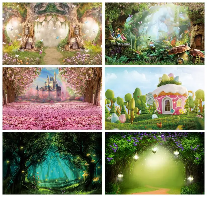 Laeacco Сказочная страна чудес деревья бабочка трава цветы блестящая пещера фон для фотосъемки для фотостудии