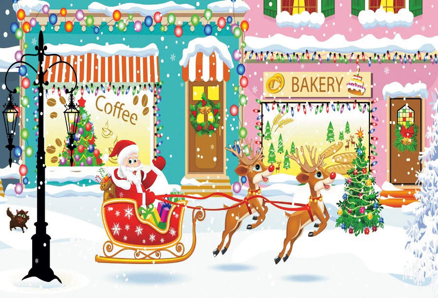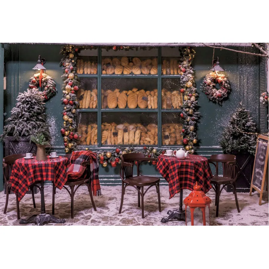 Счастливого Рождества фон зимняя Рождественская пекарня окна Виниловый фон для фотосъемки с изображением новогодние вечерние Декор Photo Booth фон студии реквизит