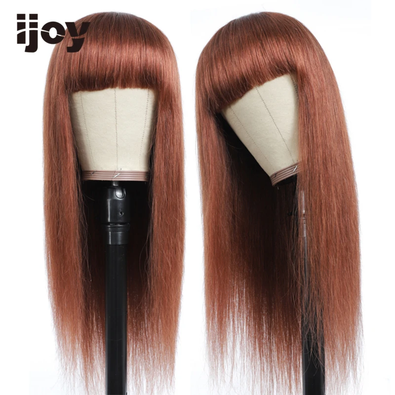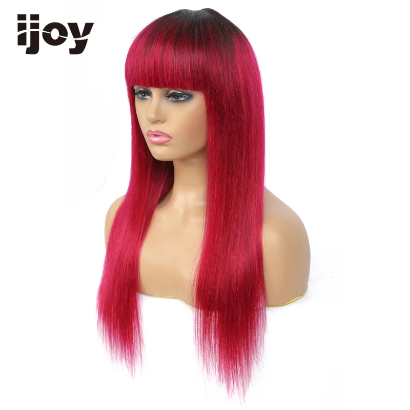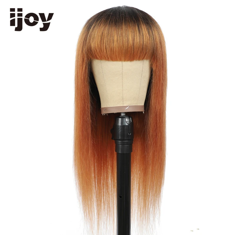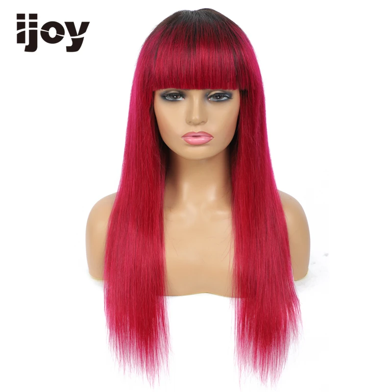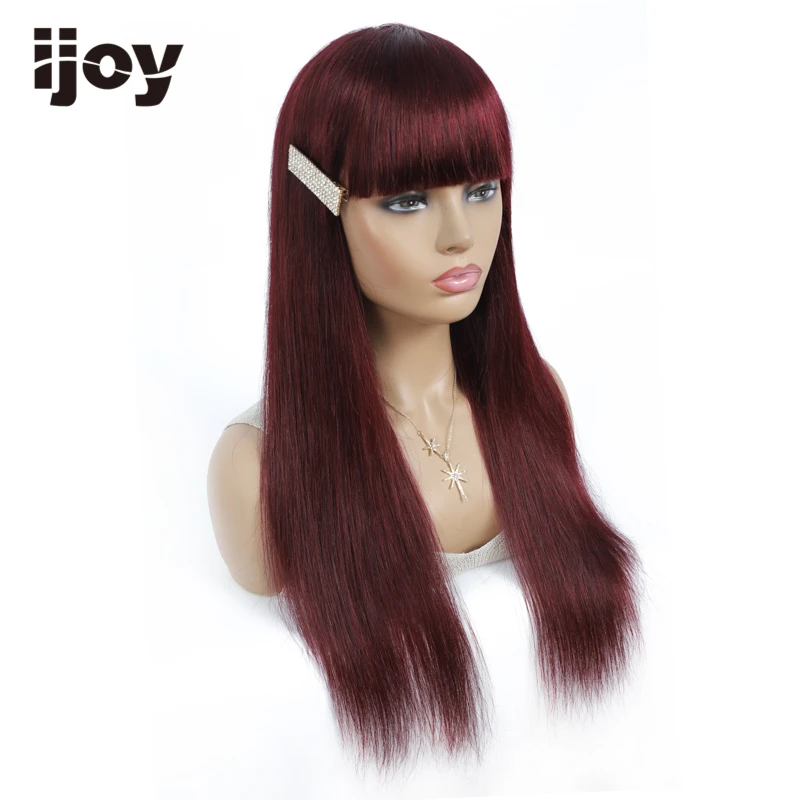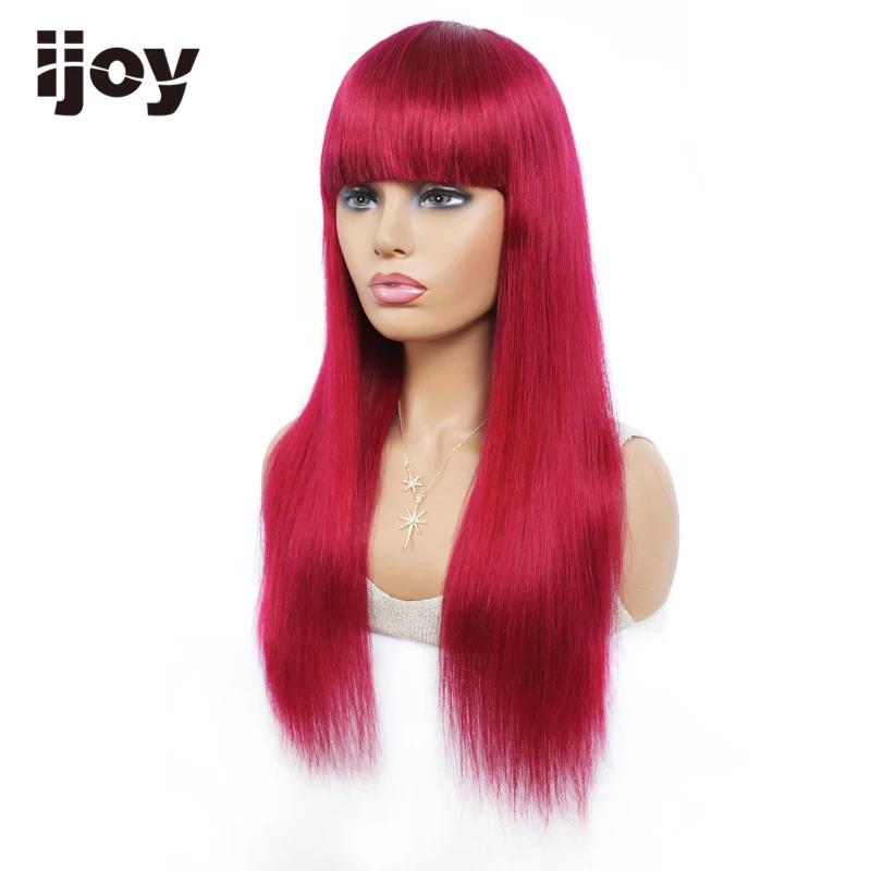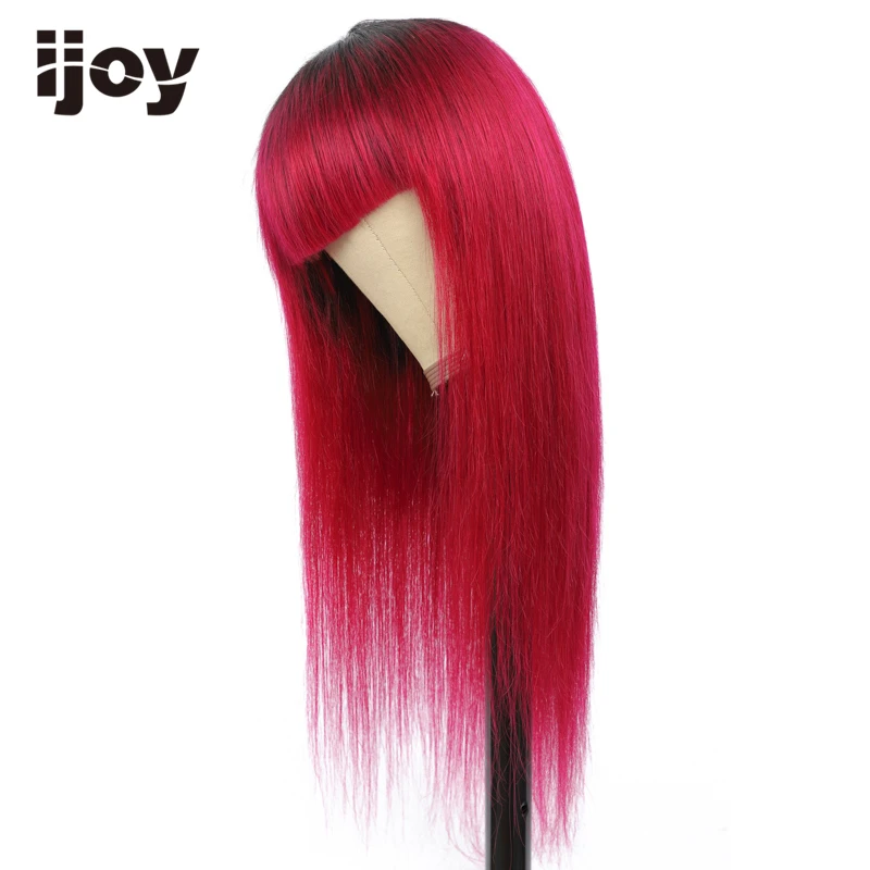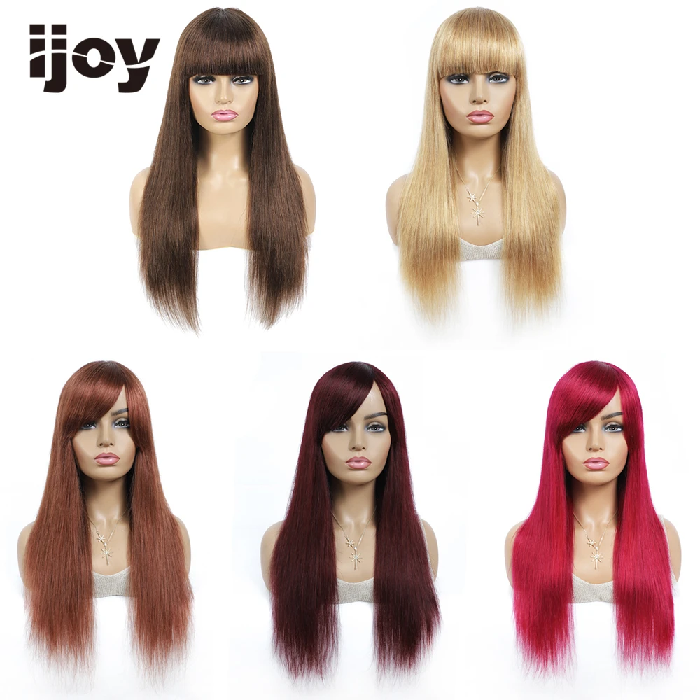 Парик из человеческих волос с челкой, прямые волосы всех цветов, бразильские волосы, парики для черных женщин, не Реми, IJOY