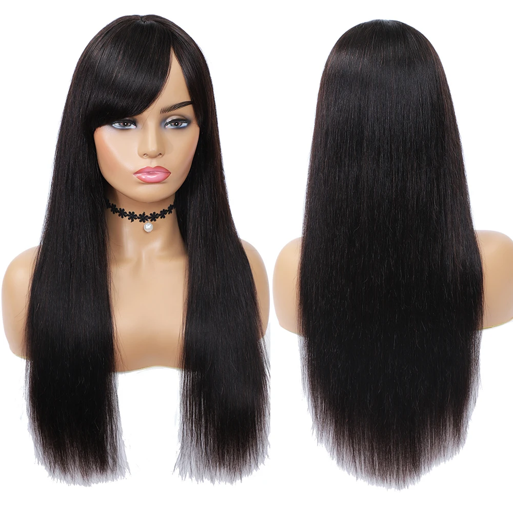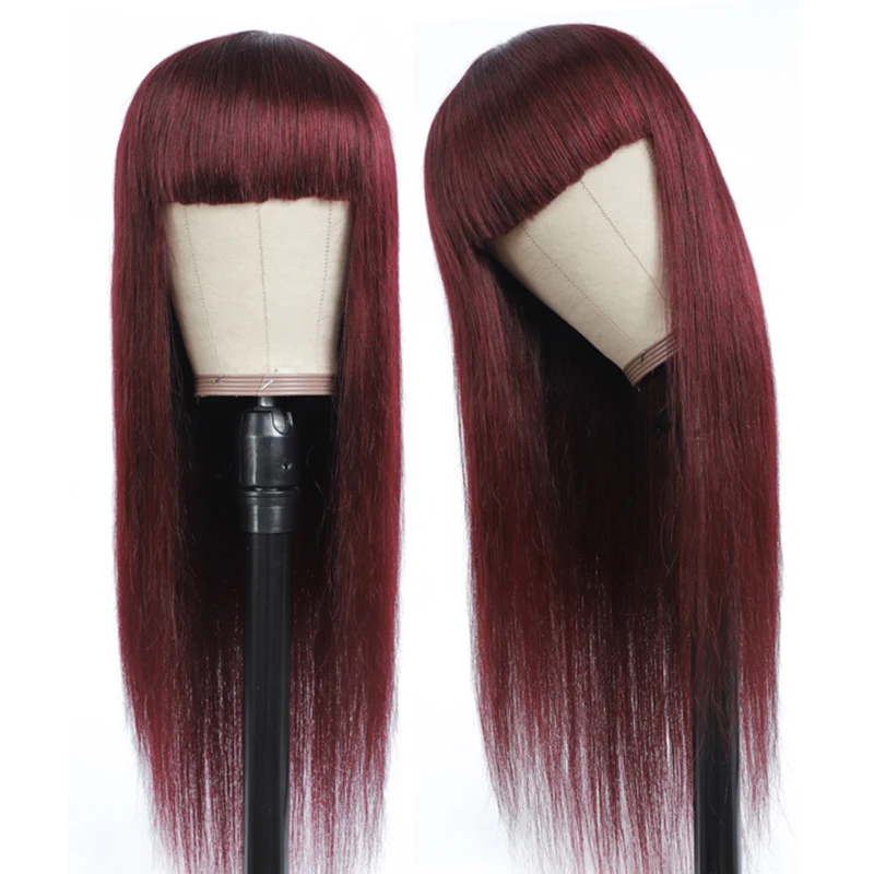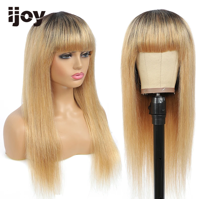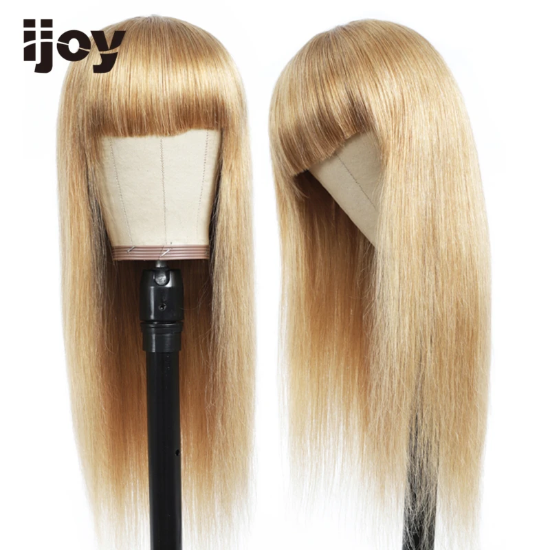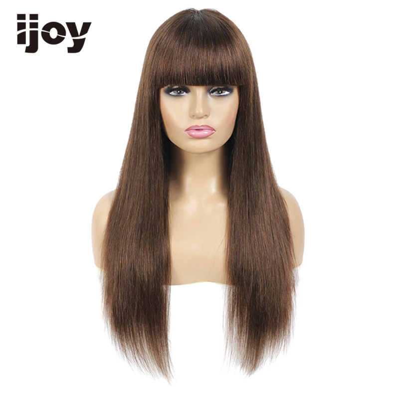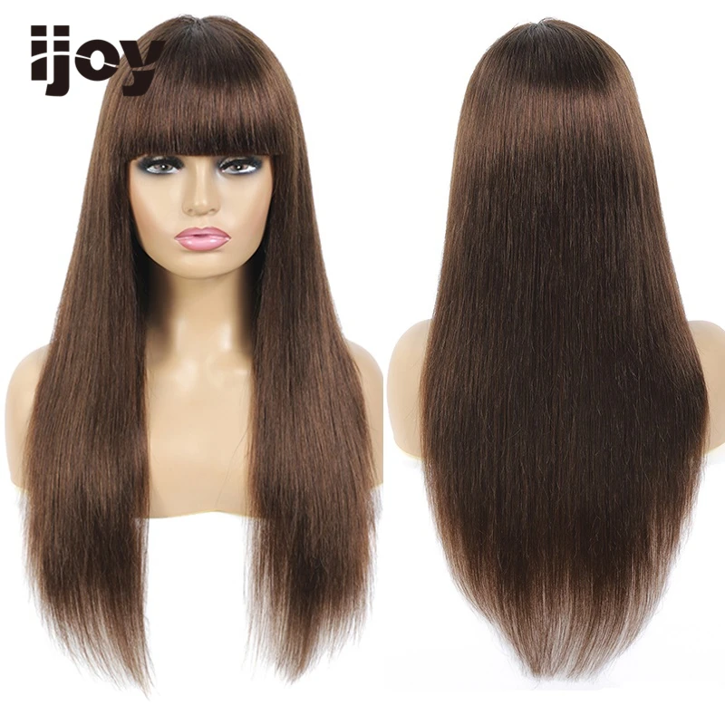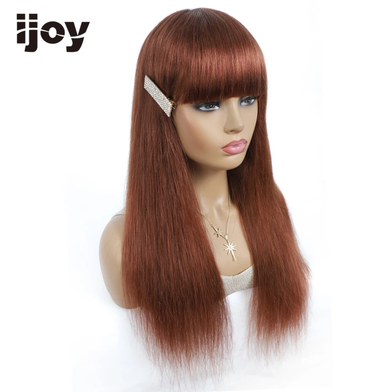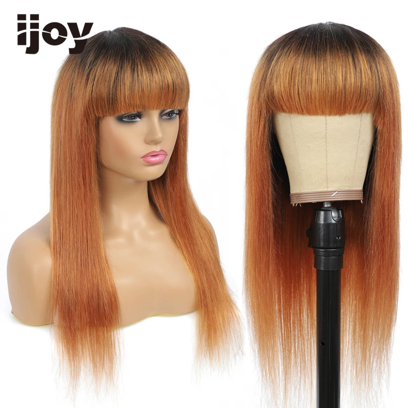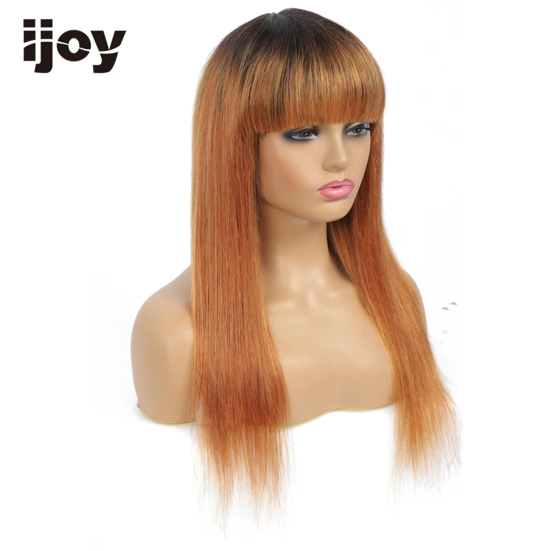 Парик из человеческих волос с челкой, прямые волосы всех цветов, бразильские волосы, парики для черных женщин, не Реми, IJOY