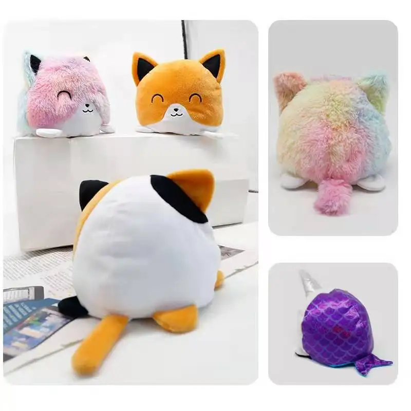15 см переворачиваемая искусственная двухсторонняя выражение лица переворачиваемая Милая мультяшная кукла животного плюшевая игрушка детская игрушка