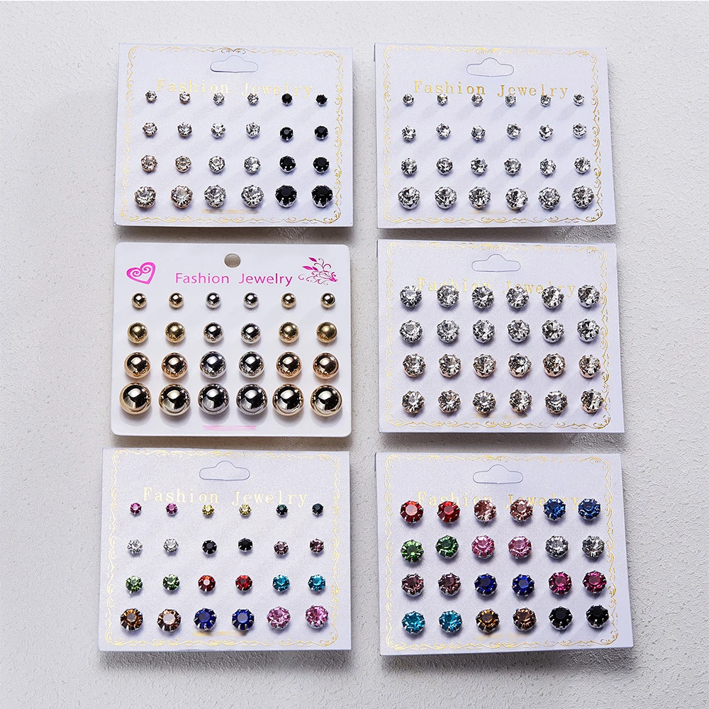 Набор шпилек для ушей, серьги с кубическим цирконием для Для женщин партия из 12 пар несколько Размеры сверкающие серьги Роскошные Femme ювелирные изделия, подарок девушке