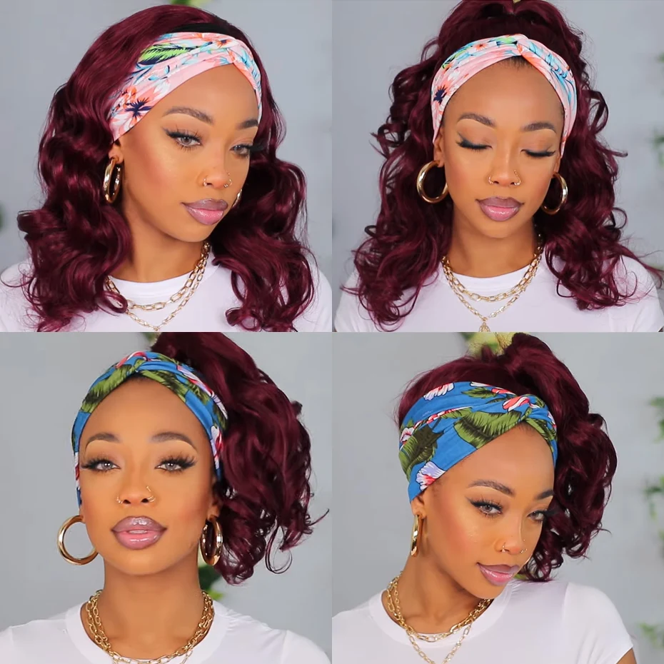 Парики из натуральных волос 99J, парик с головной повязкой окрашенные, для чернокожих женщин, бразильские, объемные волны, полностью машинное изготовление, головная повязка, парик, волосы Реми, Габриэль