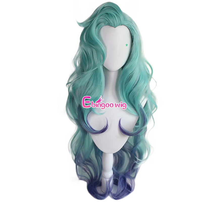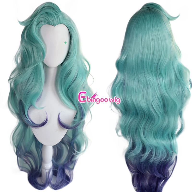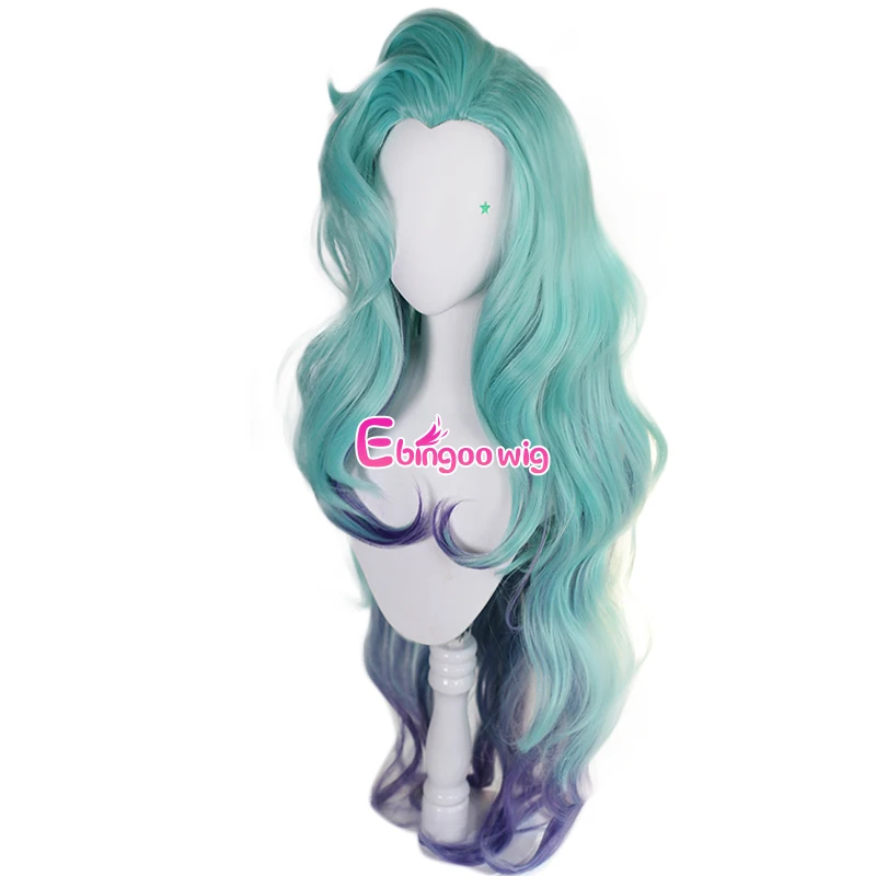 Парик для косплея Ebingoo Seraphine LoL KDA, свободные волнистые зеленые смешанные фиолетовые термостойкие искусственные волосы для косплея