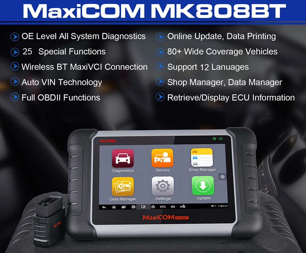 【Обновленная версия MK808, MX808 】Как обновленная версия MK808, MX808, MK808BT Беспроводное сканирующее устройство поставляется как с беспроводным подключением через VCI, так и с подключением через usb-кабель. С большим рабочим диапазоном 33 футов (10 м), MK808BT может подключаться к вашему автомобилю без проводов для выполнения диагностики и сброса услуг.【 25 Горячий функционал 】Autel MaxiCOM MK808BT диагностический сканирующий инструмент поставляется с большинством регулярных услуг, таких как сброс масла, сброс EPB, сброс SAS, DPF, BMS, дроссельная заслонка, Кодирование инжектора, ABS Bleed, ключи IMMO (удаление потерянных ключей, добавьте новые ключи), одометр и т. Д. Примечание: сброс/услуги не работают на всех транспортных средствах.Примечание: не доступен с активным тестом, кодированием ECU и программированием.【Полная Диагностика систем 】Autel MK808BT является диагностическим инструментом начального уровня, который может получить доступ ко всем доступным автомобильным электронным системам, таким как ABS, SRS (подушка безопасности), двигатель, трансмиссия, тормозные системы и т. Д. Этот инструмент сканирования может работать на более чем 80 + марок и моделях для чтения и очистки кодов неисправностей (DTCs) На всех системах и показывает пар данных в реальном времени нескольких датчиков в графе и текст и извлекать информацию о ECU.【AUTO VIN & AUTO SCAN】С новейшей VIN-based функцией Auto VIN и автоматическим сканированием, MK808BT автоматический диагностический инструмент для сканирования может работать на конкретных транспортных средствах, чтобы получить информацию о вине и выполнить комплексное сканирование всех доступных систем для эффективной и точной повседневной диагностики и обслуживания автомобилей.Примечание: функция Auto VIN не работает на всех автомобилях.【 1 год бесплатных обновлений и гарантииAutel MK808BT поставляется с 1 годом бесплатного обновления программного обеспечения. Когда срок бесплатного обновления истекает, вы все еще можете использовать последнее программное обеспечение обновления.