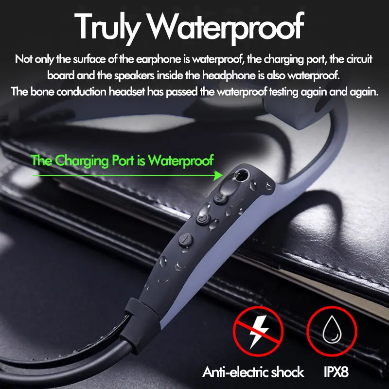Bluetooth-наушники с костной проводимостью, 16 ГБ, IPX8