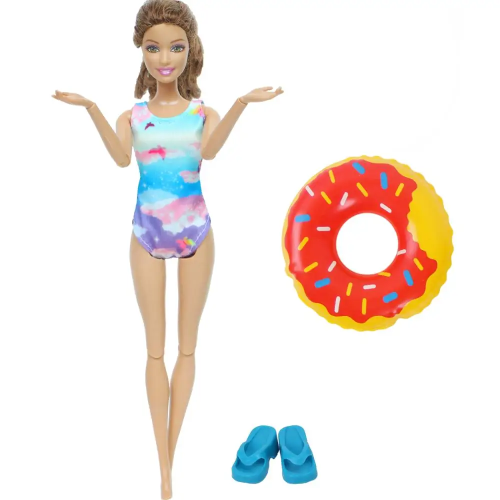1 комплект, купальники, пляжная одежда для купания, милое бикини, купальник + случайное кольцо для плавания + 1x одежда тапочки для куклы Барби, детские игрушки