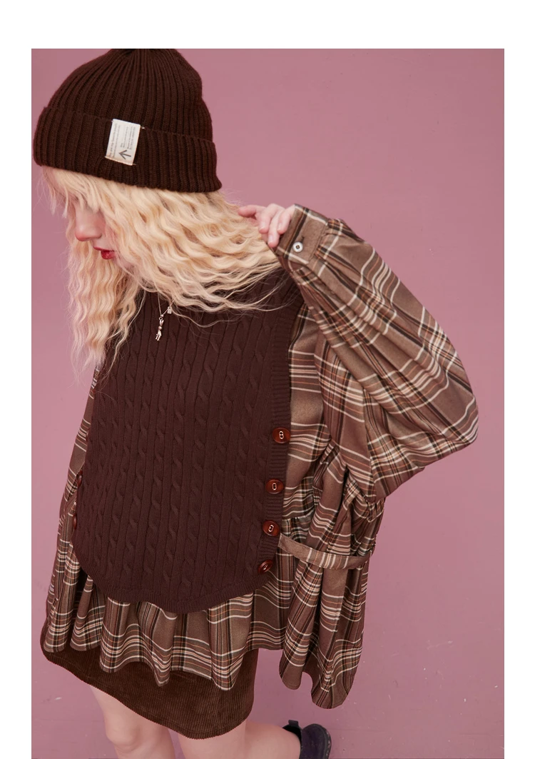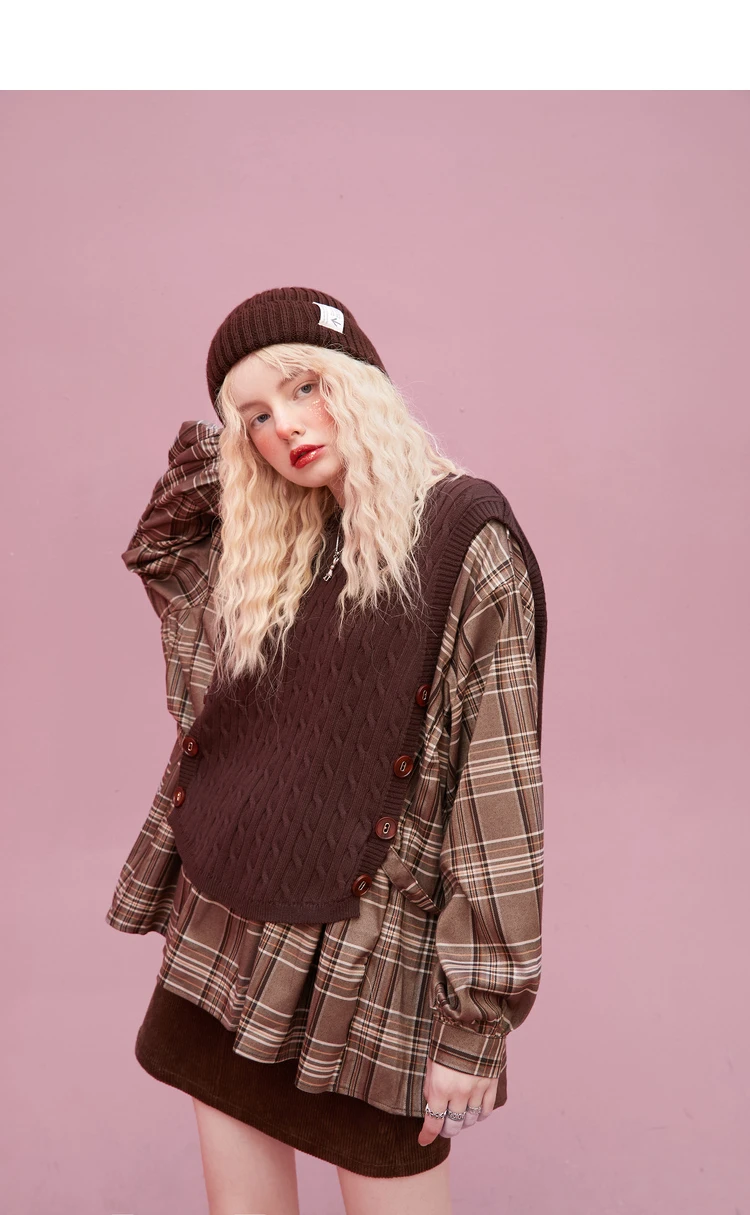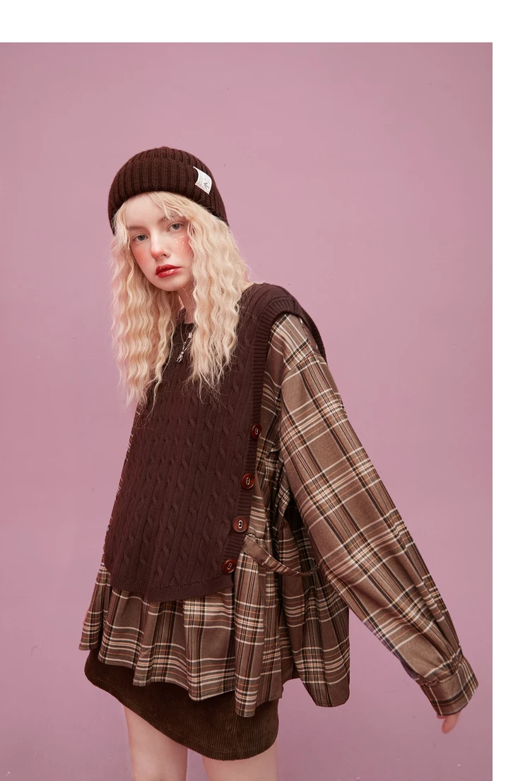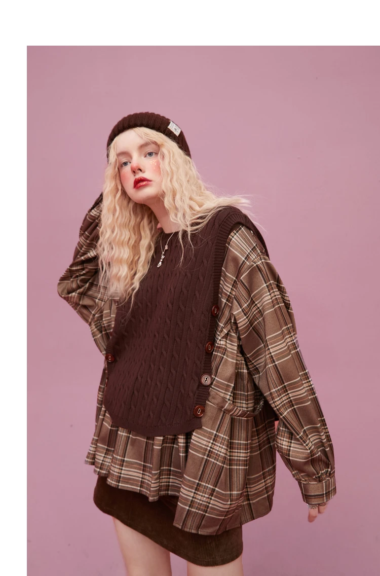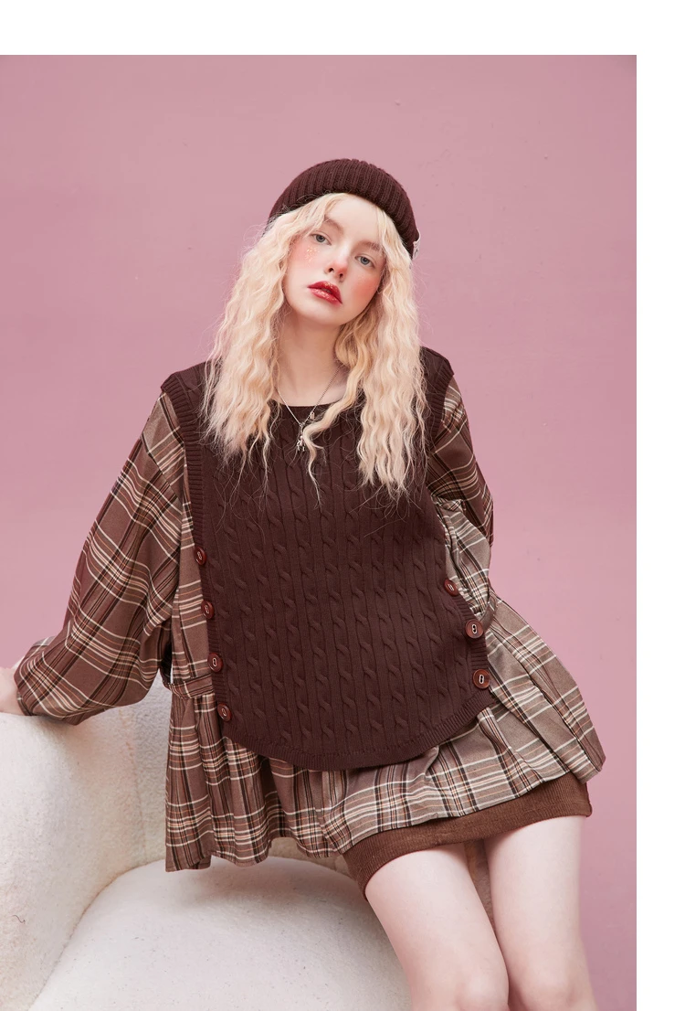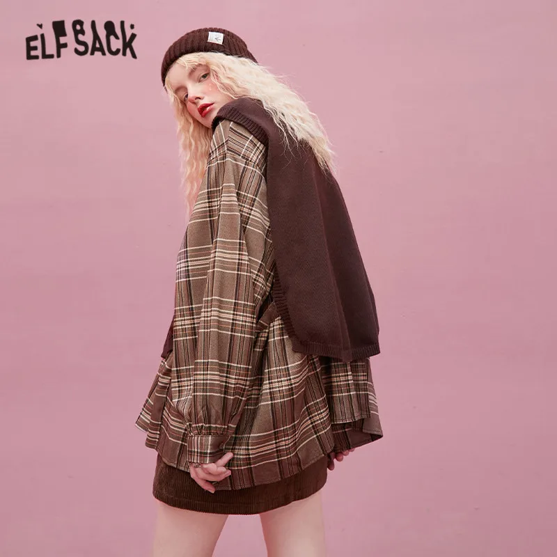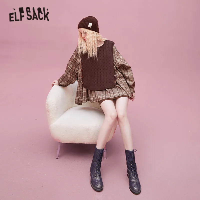 ELFSACK клетчатая шикарная на пуговицах Повседневный пуловер вязаный свитер женский, 2020 осенние винтажные корейские женские повседневные Мягкие элегантные топы
