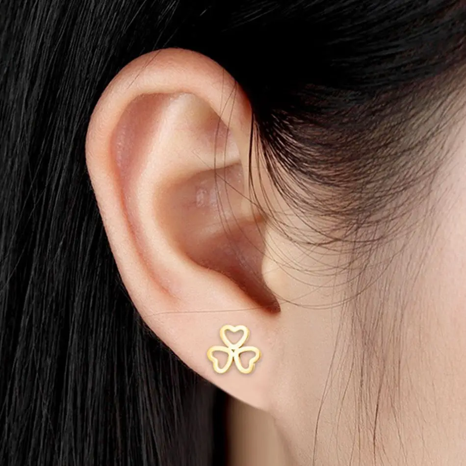 Новые серьги в форме сердца и клевера для женщин, серьги золотого цвета из нержавеющей стали, ювелирные изделия, рождественские подарки, оптовая продажа