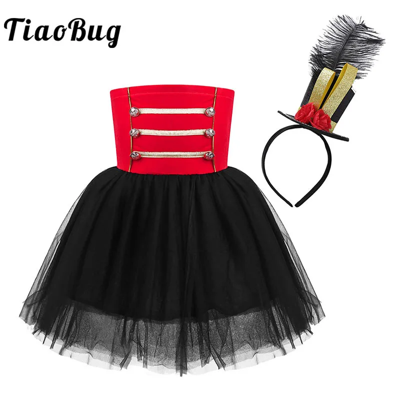 Детское платье с пачкой из сетки с сердечком и повязка на голову для девочек на Хэллоуин рождественской костюмированной игры; Majorette производительность Щелкунчик манежа цирк костюм