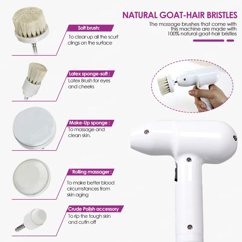 Цель машина-щетка для лица-удалить омертвевшие клетки (отшелушивать) иУдалите грязьИ грязь, которая прилипает к поверхности кожи. Перед любой процедурой чистки необходимо очистить кожу. Лицо испаряется или отпаривается теплыми полотенцами, чтобы смягчить омертвевшие поверхностные клетки, чтобы их было легче удалить. Перед началом дальнейшего лечения важно использовать вращающуюся щетку.