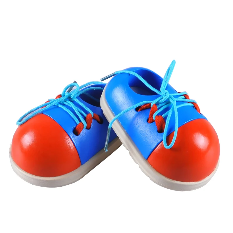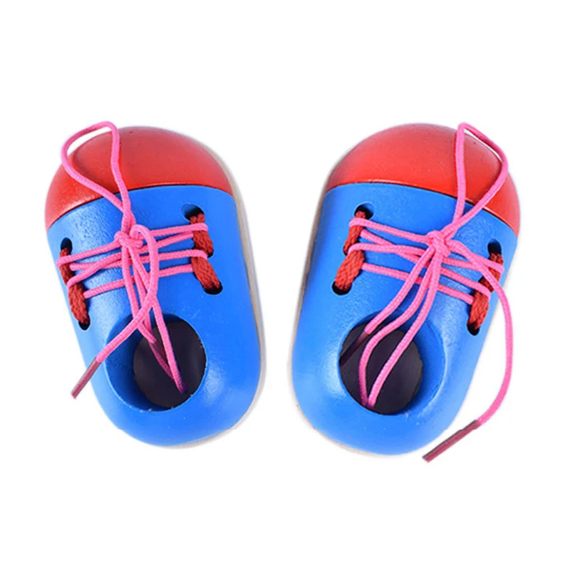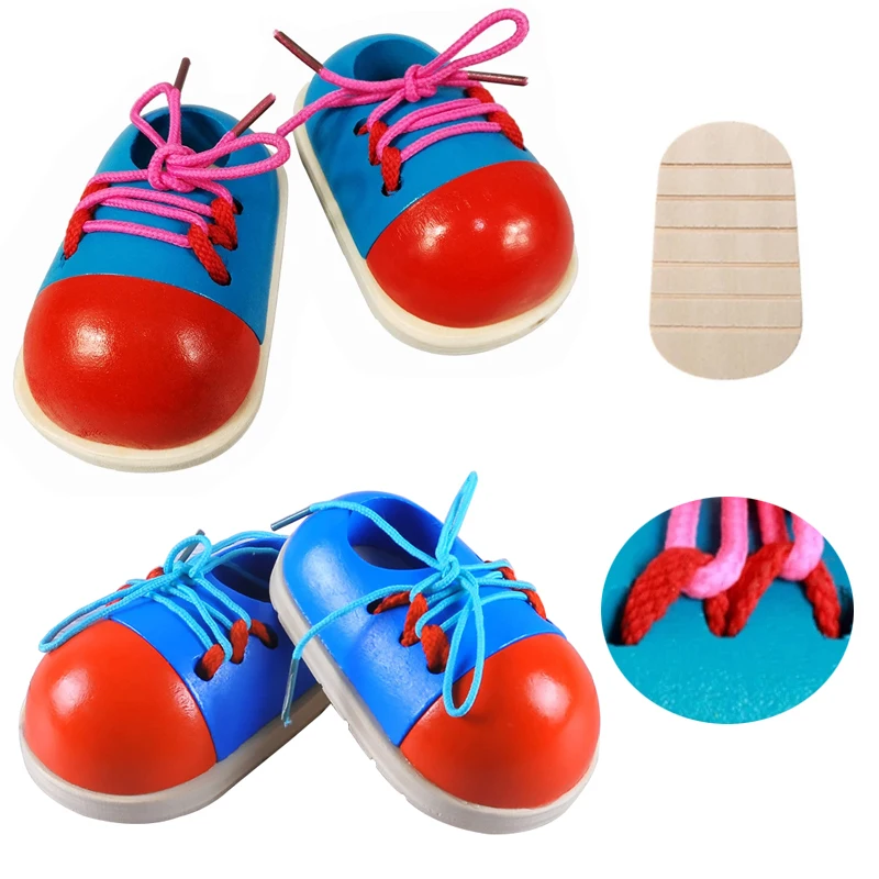 Обувная обувь Монтессори для детей, деревянные игрушки на шнуровке, Обучающие игрушки, популярные строительные шнурки, игрушка для малышей, креативная