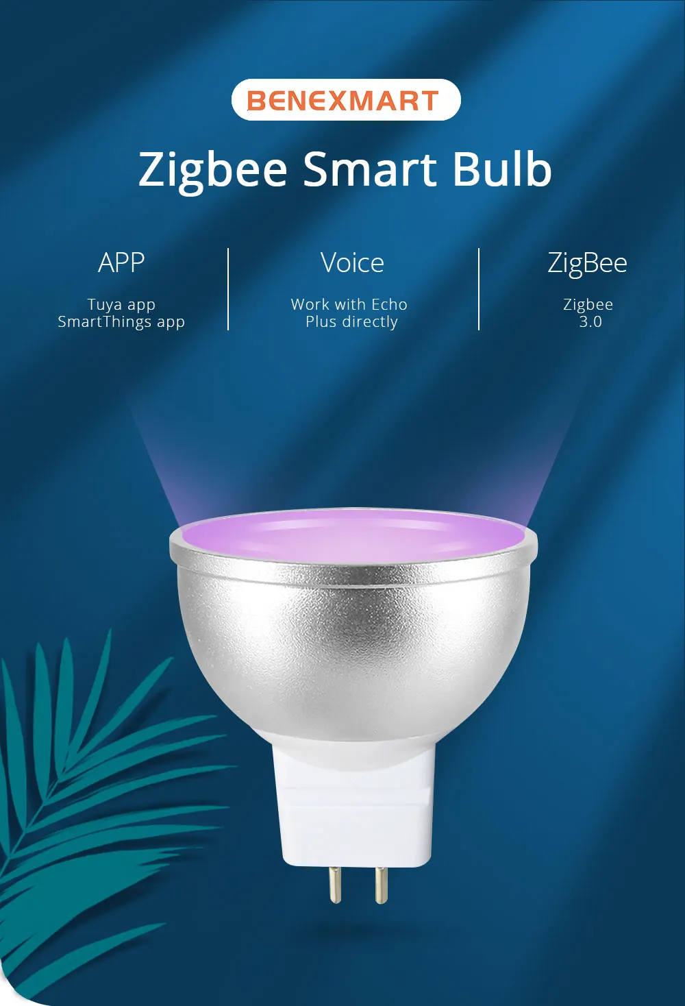Benexamrt Zigbee MR16 Светодиодный светильник, лампа Tuya, умная лампа 5 Вт RGBCW, точечный светильник, работа с SmartThings Alexa Google Home 460lm