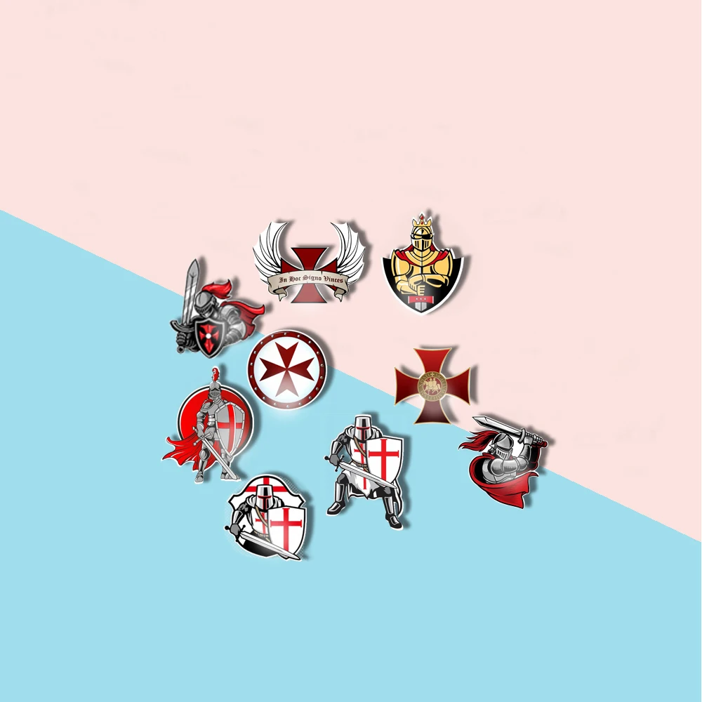Классические Рыцари Templar Красный Крест акриловая булавка для лацканов Римская церковь крестовый эпоксидный искусство полимерные брошки и булавки декоративные украшения
