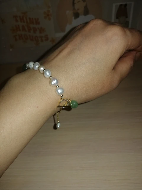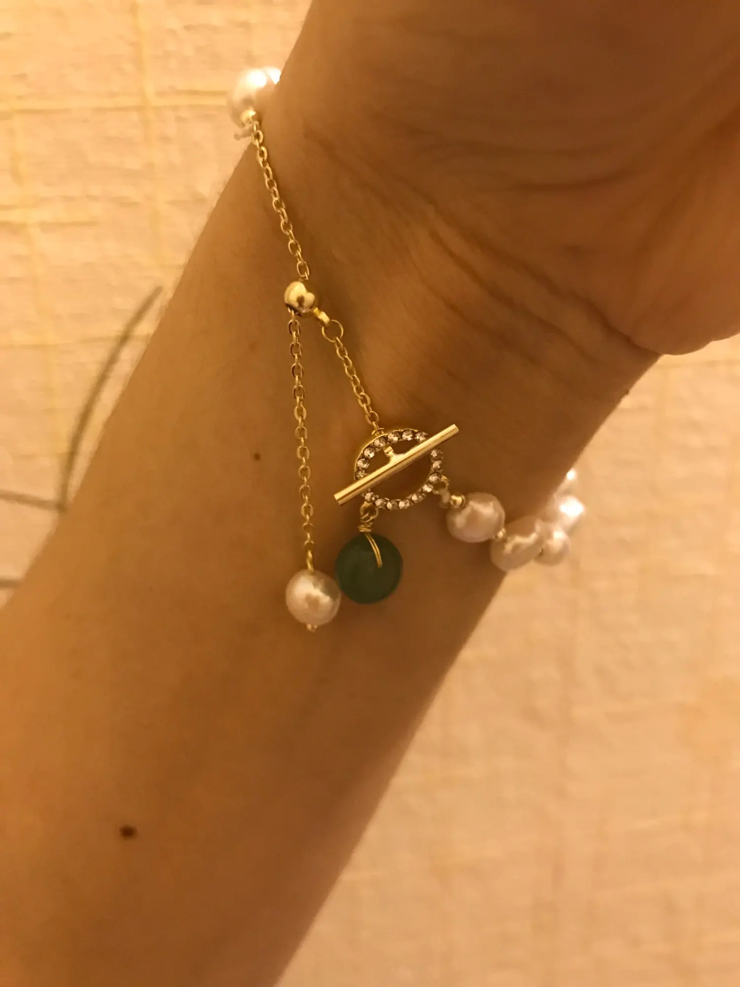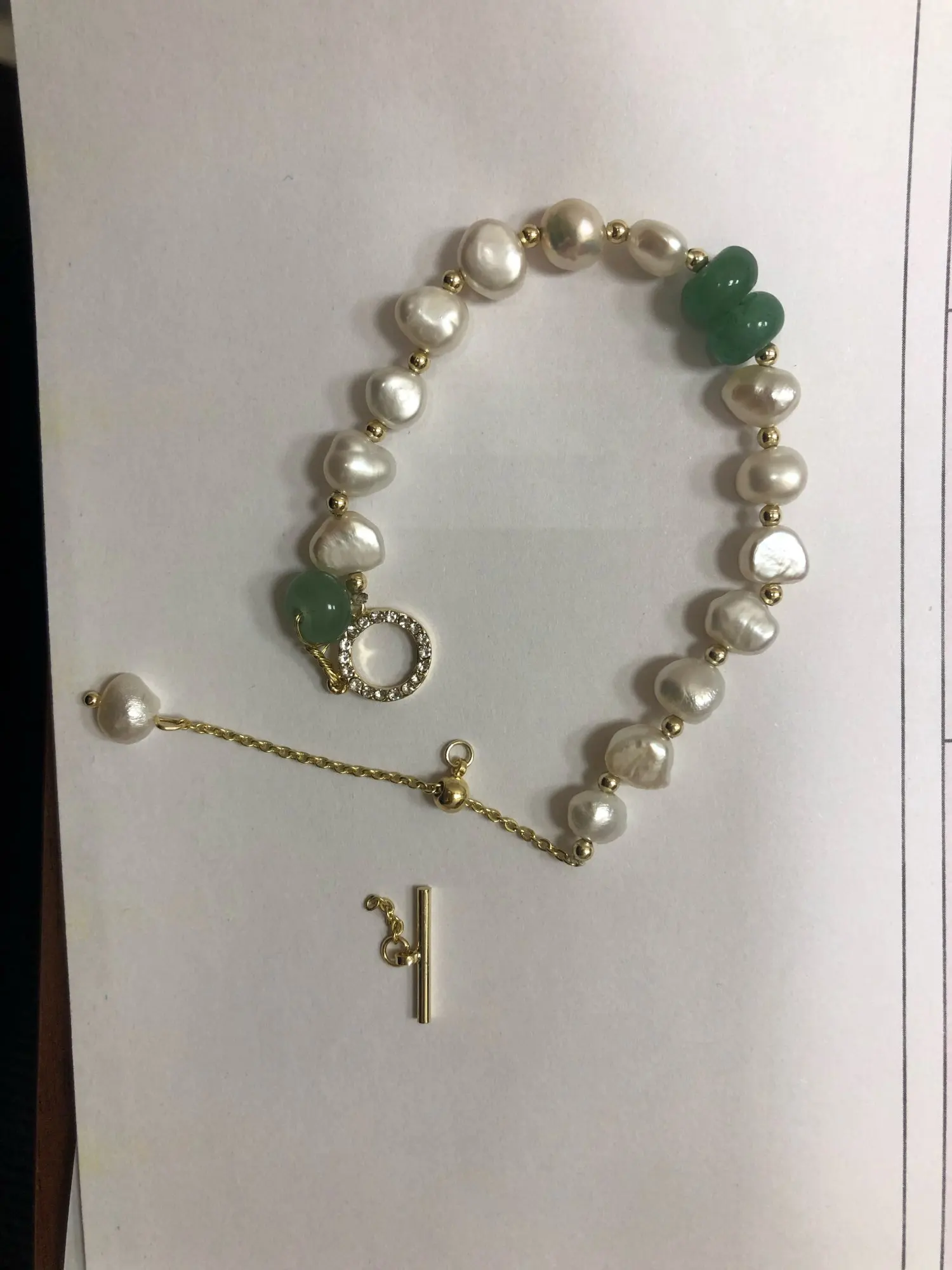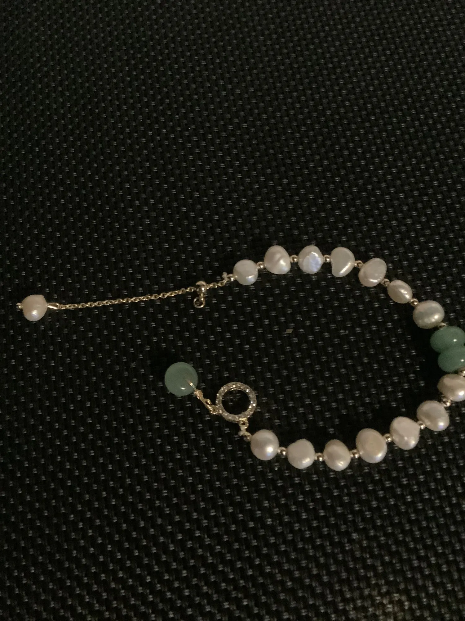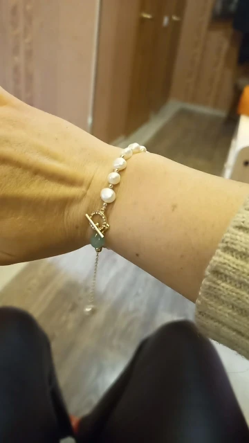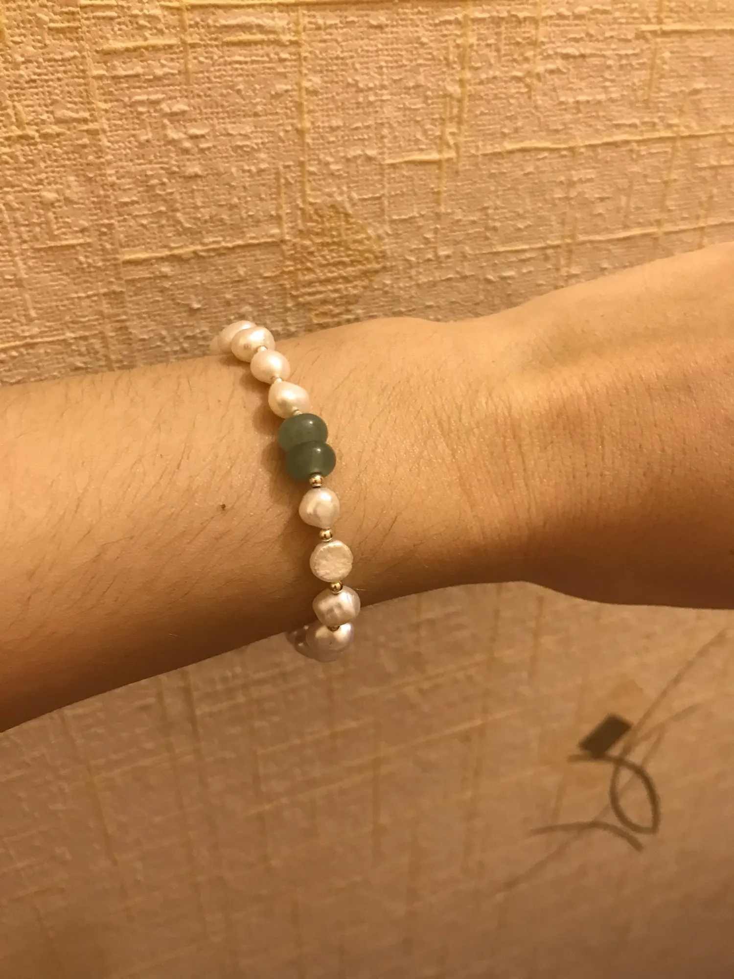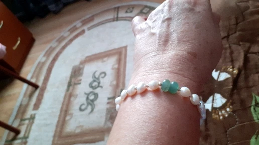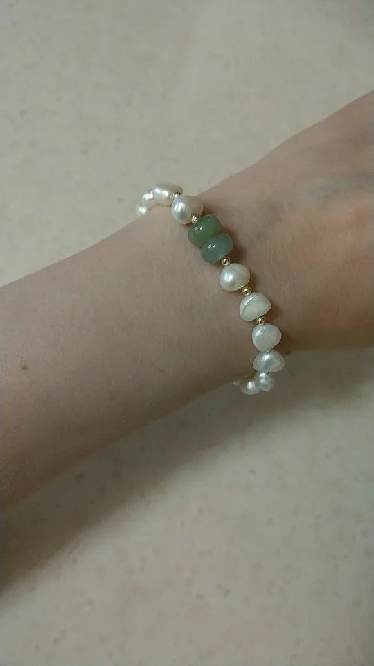 Браслет милый, белый жемчуг и зеленый нефрит хорошо сочетаются. Я рекомендую этот товар и этот магазин.