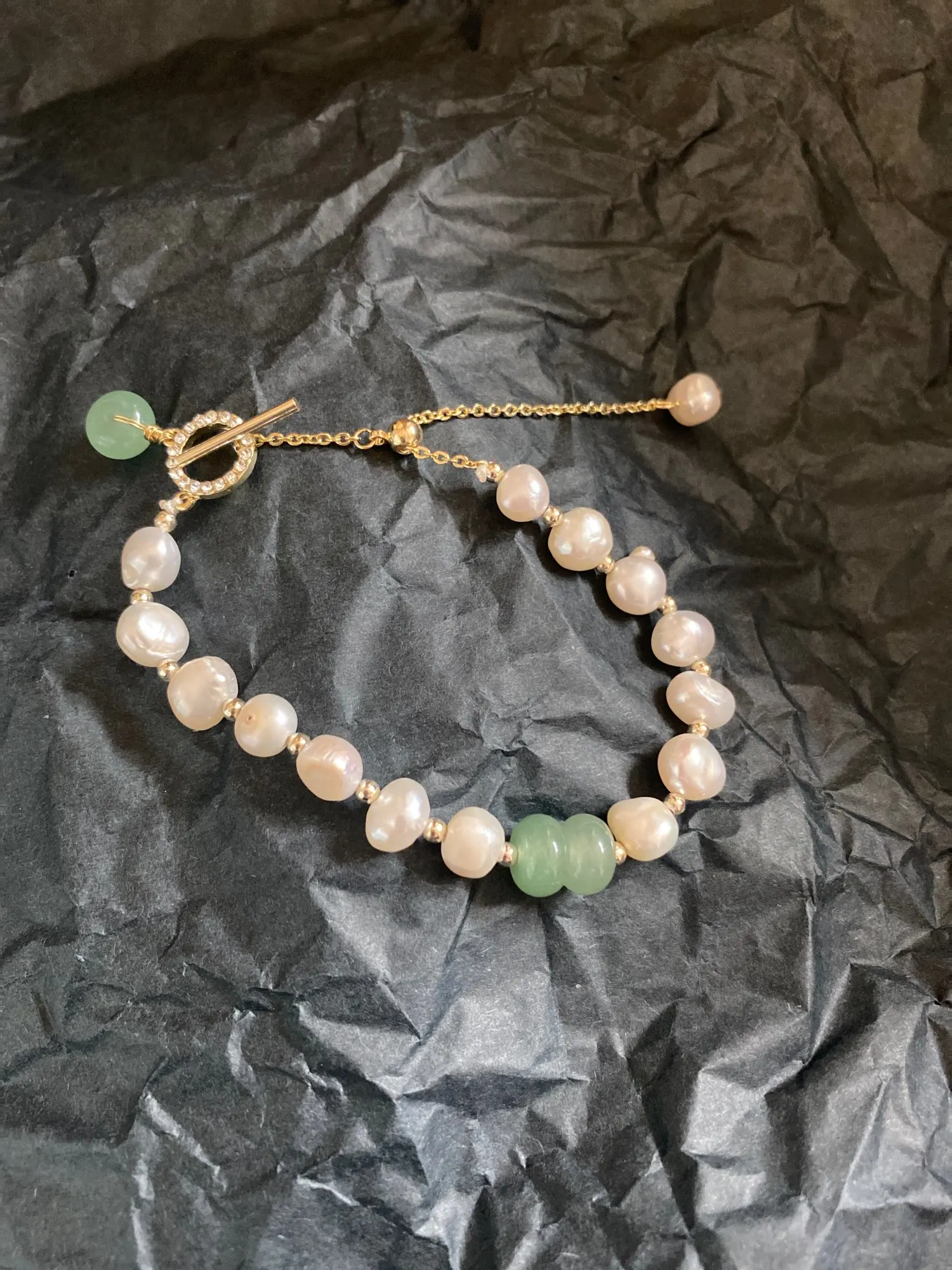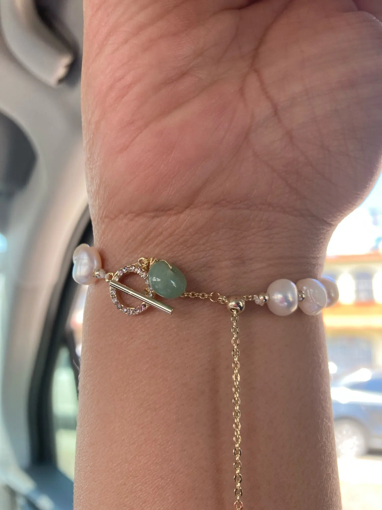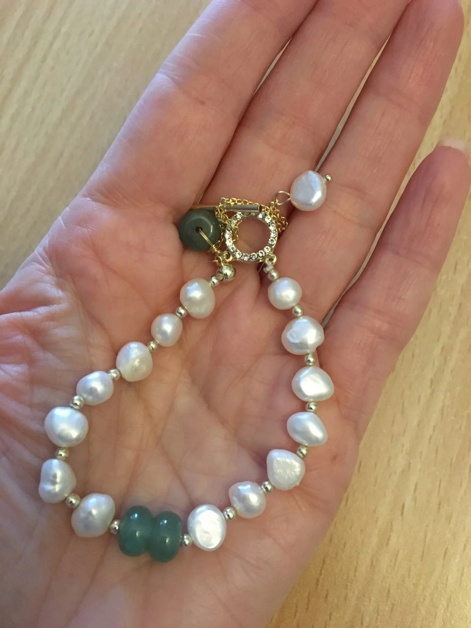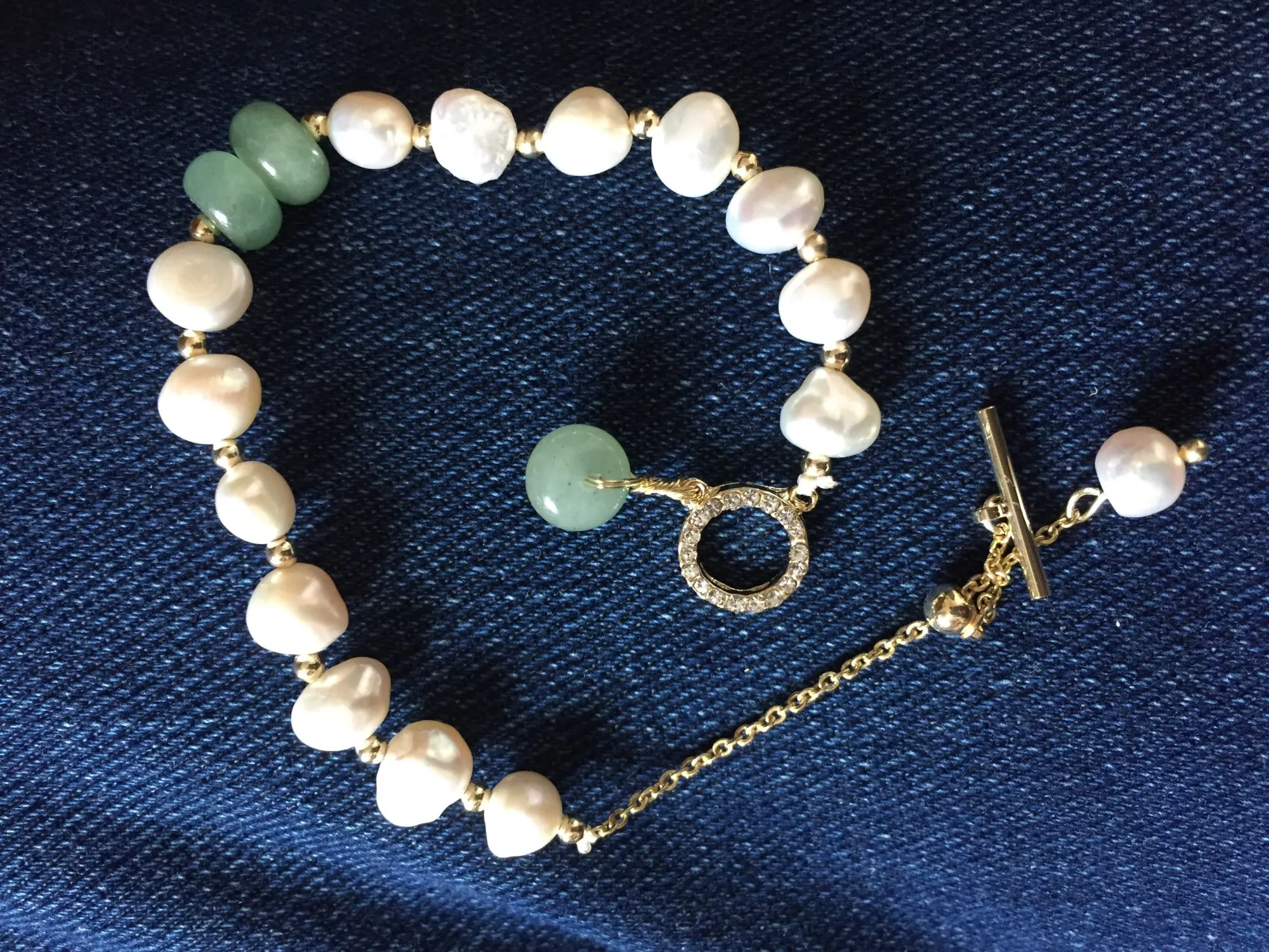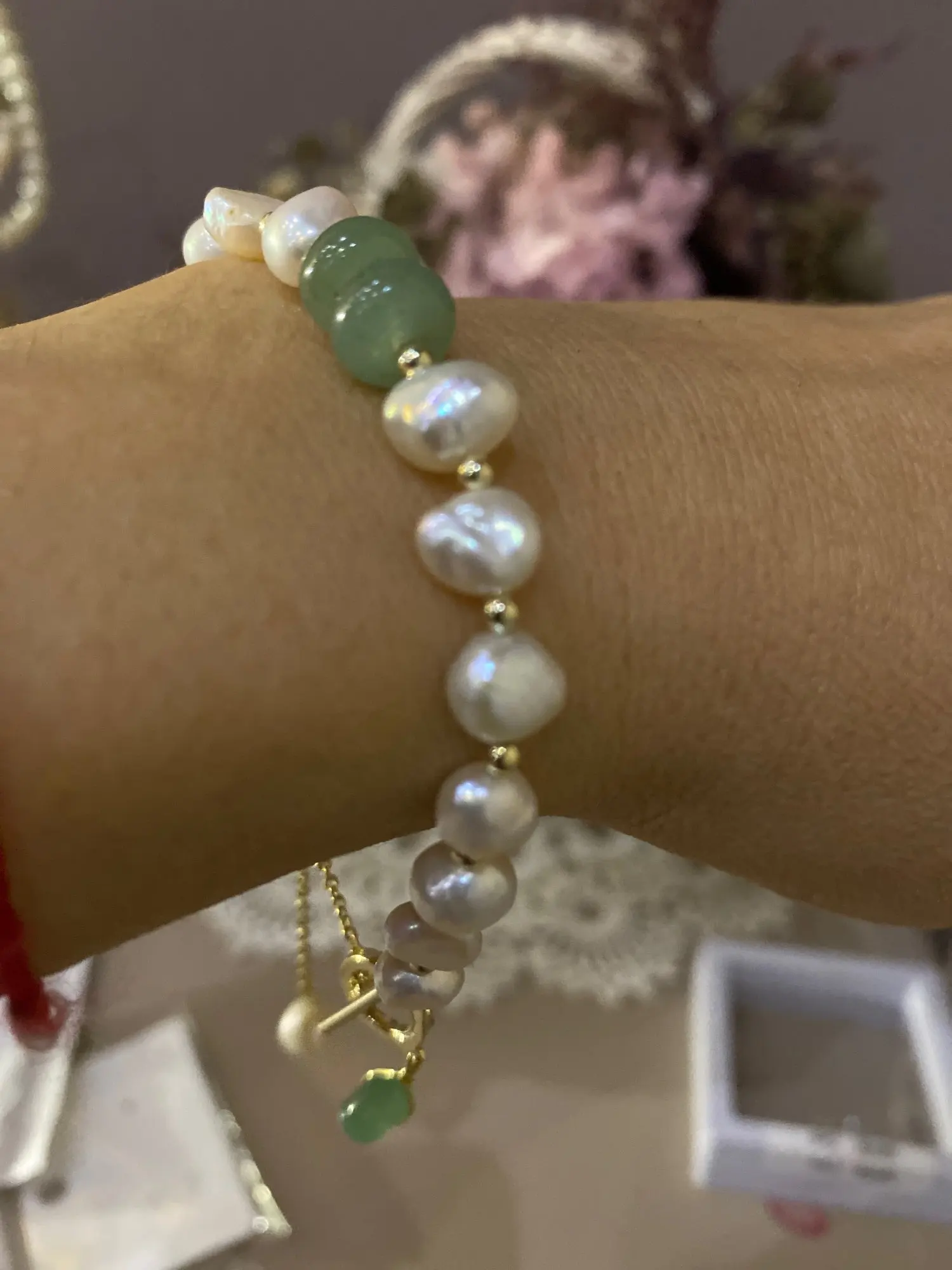 Браслет милый, белый жемчуг и зеленый нефрит хорошо сочетаются. Я рекомендую этот товар и этот магазин.