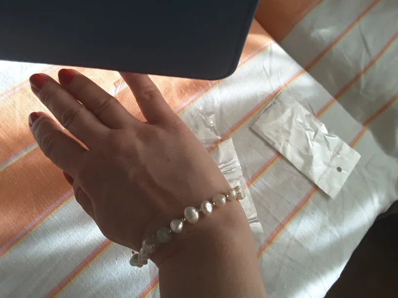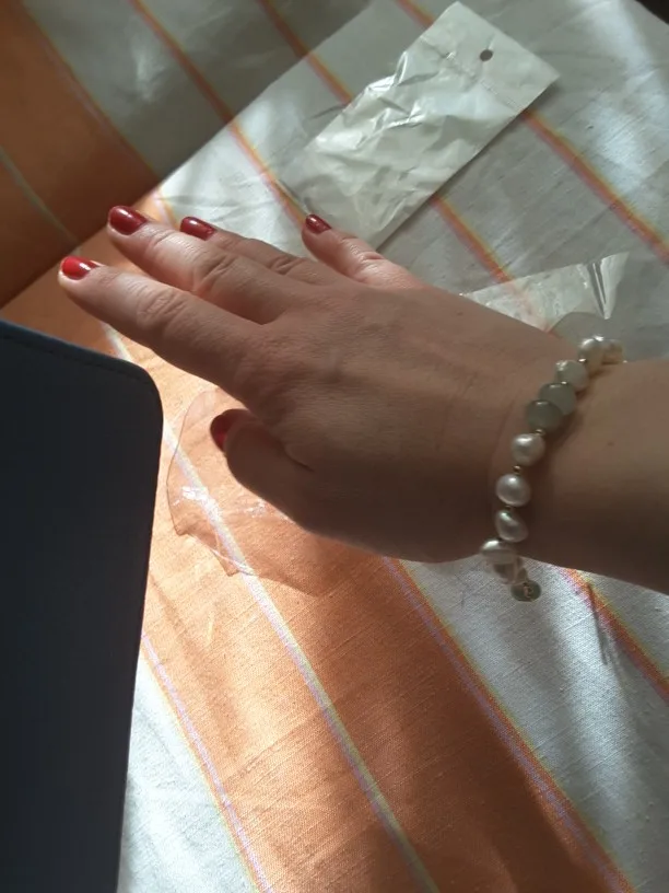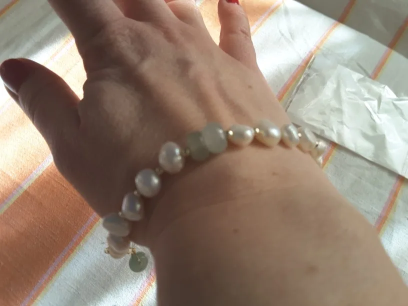 Классный браслет, красивый, изящный, качество хорошее, бусинки скорее всего пластик, но сделано под жемчуг, красиво отливает перламутром и неровные как настоящий жемчуг; на широкие запасаться не подойдёт, только до 14,5 см в обхвате; заказом довольна, пришёл быстро - в течение недели, так как был объединён с другими посылками