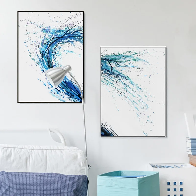 Абстрактный пейзаж Голубая волна брызги воды холст картина диван фон стены без рамки картина печать плакат украшение комнаты
