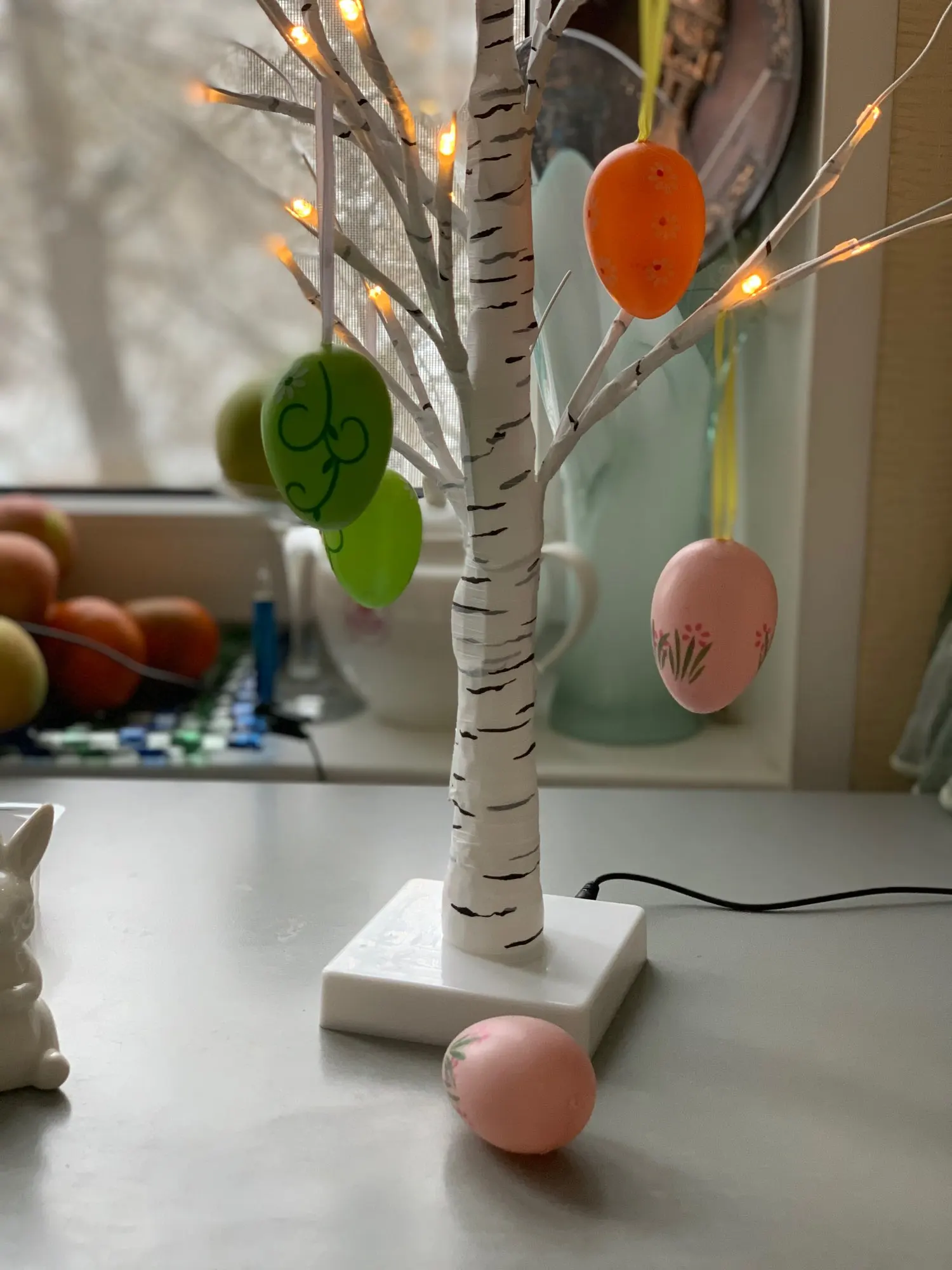 Прибыл и в хорошем состоянии, висит на пасхальном дереве, я купил, выглядит мило