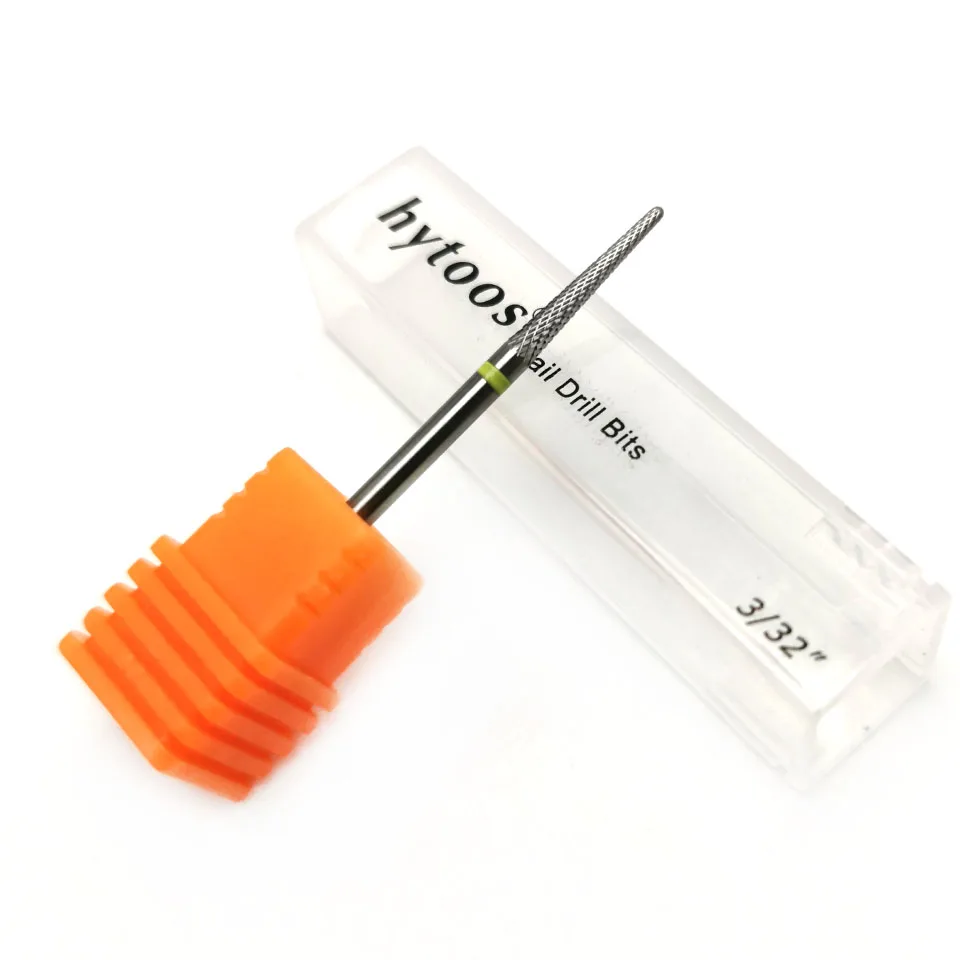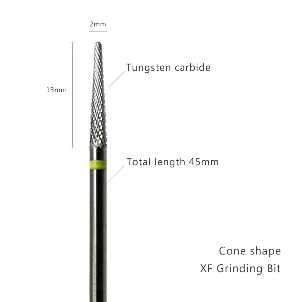 Конусные твердосплавные фрезы HYTOOS XF для ногтей, 332 дюйма, шлифовальные насадки для ногтей, вращающиеся фрезы для маникюра, аксессуары для ногтей инструменты для кутикулы