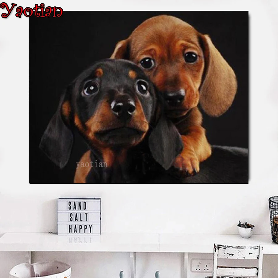Такса милая собака 5D полная квадратная круглая дрель Алмазная вышивка алмазная живопись набор крестиков мозаичное украшение