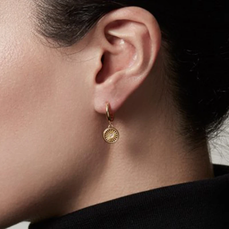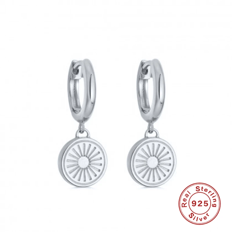 Aide 925 Висячие серьги из серебра 925 пробы с солнечным светом узор Круглый диск кольцо подвеска серьги в виде капель с кристаллами в форме для женщин ювелирные изделия