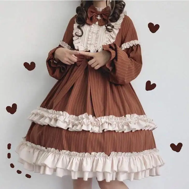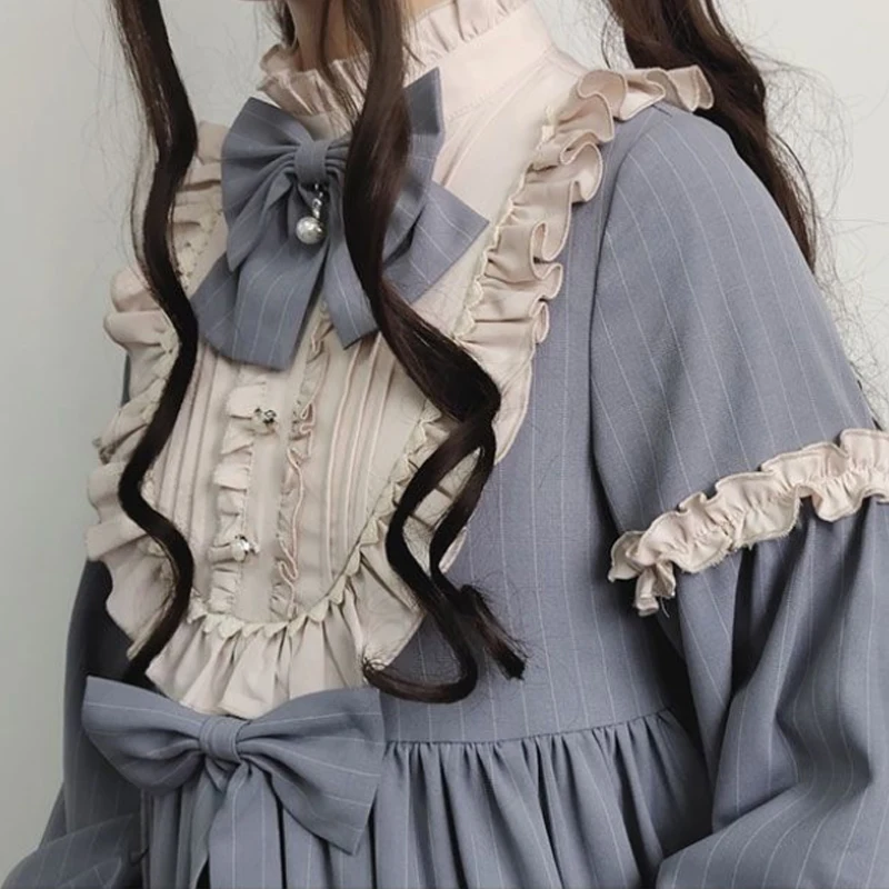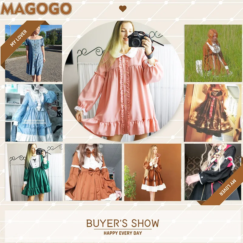 Женское винтажное платье MAGOGO в стиле Лолиты, с длинным рукавом, свободное, в японском стиле, с бантом
