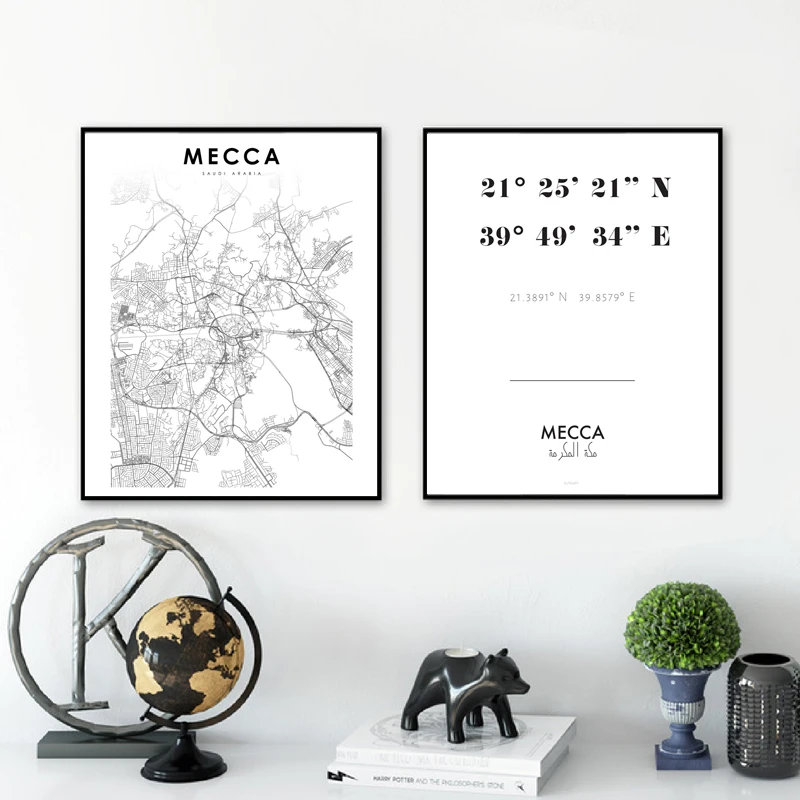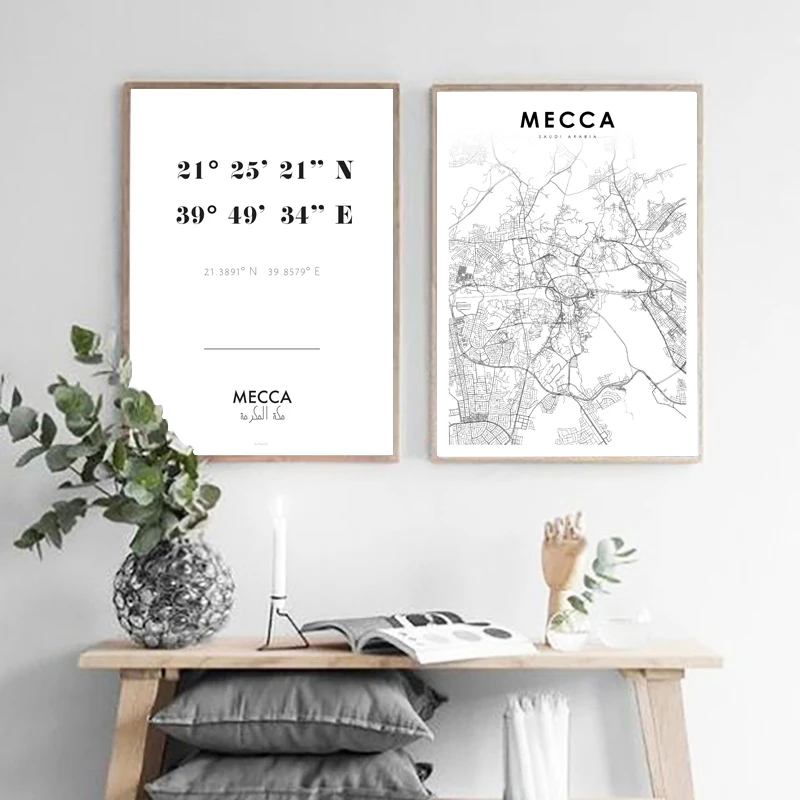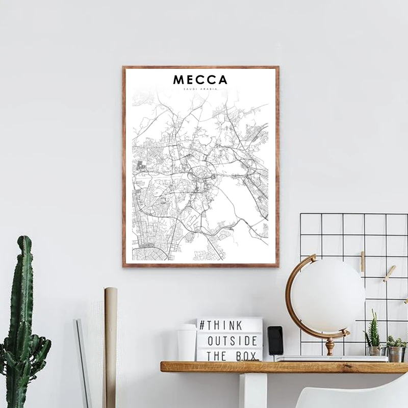 Мекская карта Саудовской Аравии художественные принты черный белый минималистичный плакат Исламская настенная Картина на холсте картина для гостиной домашний декор