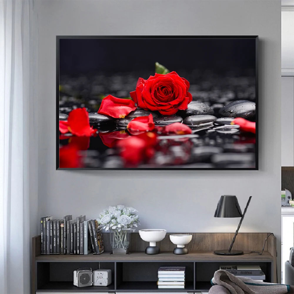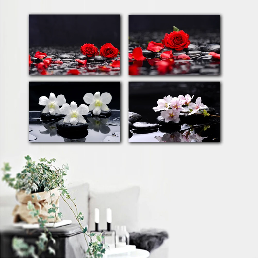 Красная роза и черные камни дзен, холст, картина, плакат, Бабочка, цветение персика, настенное искусство, Бамбуковая Печать на холсте, современный настенный Декор