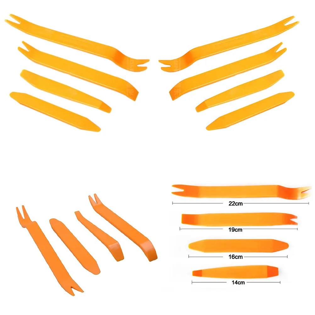 Описание:100% новый и высокое качествоУникальный дизайн с защитой от царапин и экономии трудаУниверсальный и многофункциональныйЭти инструменты 4 шт. изготовлены из отличного материала и тонкой работы, это хороший подарок для друзей.Гладкая и есть определенная гибкость, полная защита автозапчастей при снятии и установкеМатериал: АБС-пластикДлина: 14 см, 16 см, 19 см, 22 смПримечание:Пожалуйста, работайте после остановки автомобиля и полного отключенияНе позволяйте вашим детям играть с инструментомПосылка:4/7 шт. автомобиль панель средство для удаления