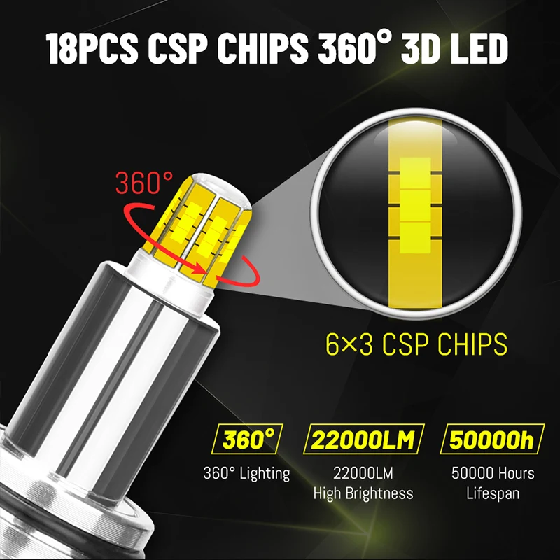 Светодиодные фары H7 светодиодный D1S D2S D3S D4S D2H 22000LM 360 г...